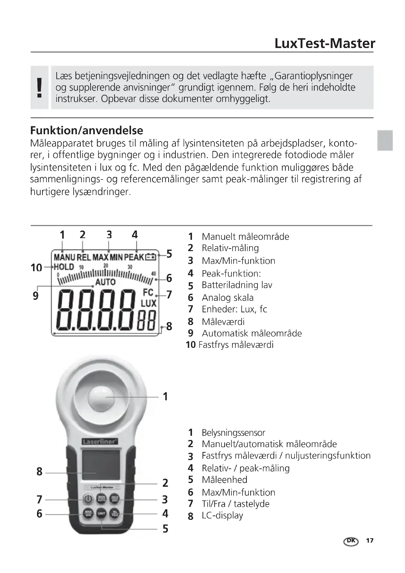 BRUGSANVISNING LuxTestMaster Laserliner