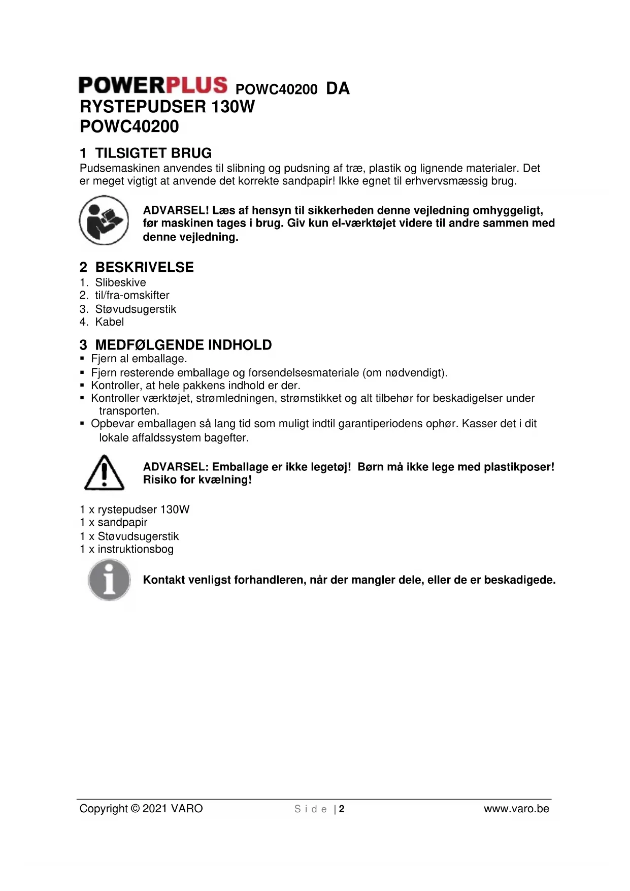 Find enhedens vejledning gratis POWC40200 PowerPlus i PDF-format.