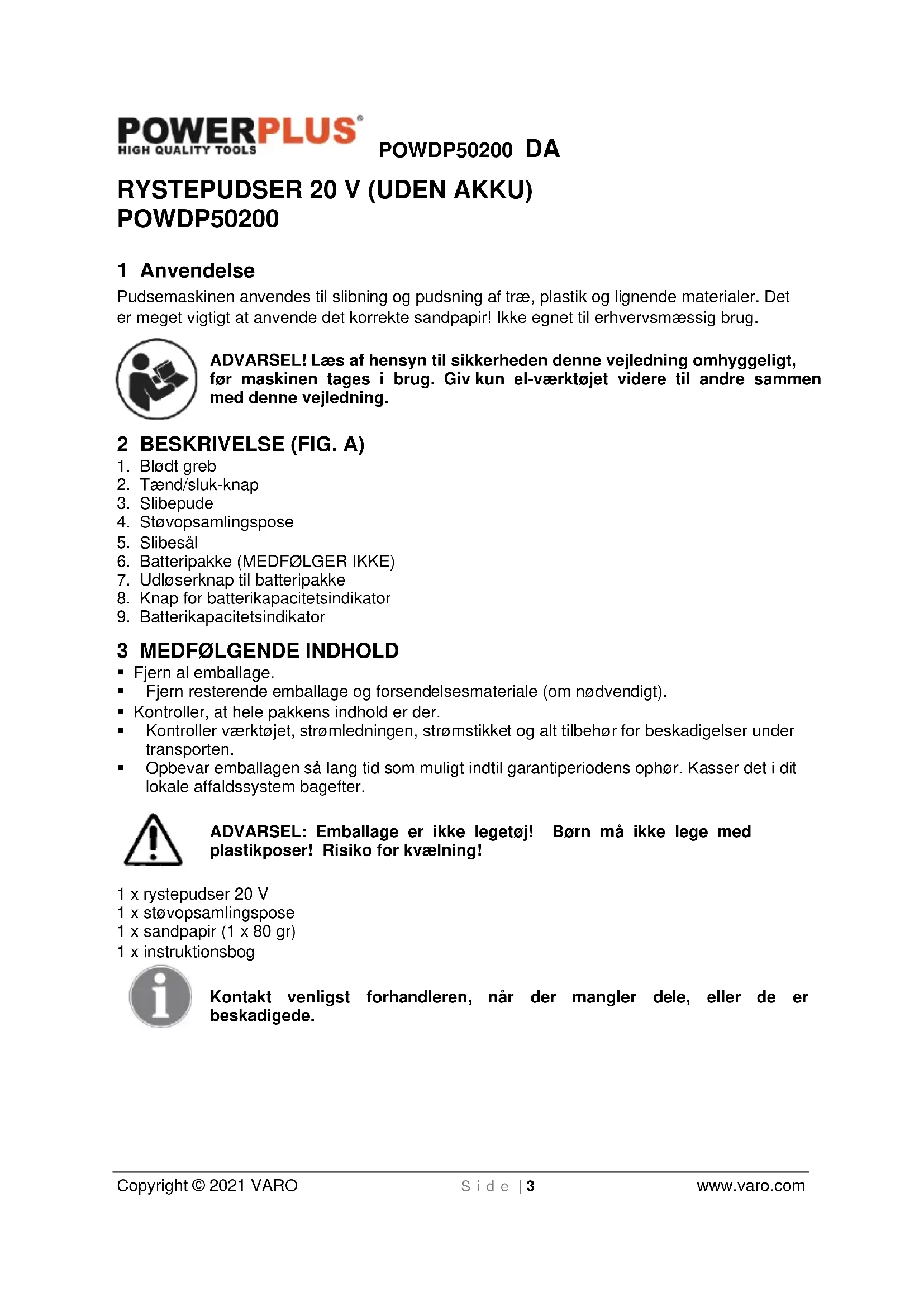 Find enhedens vejledning gratis POWDP50200 PowerPlus i PDF-format.
