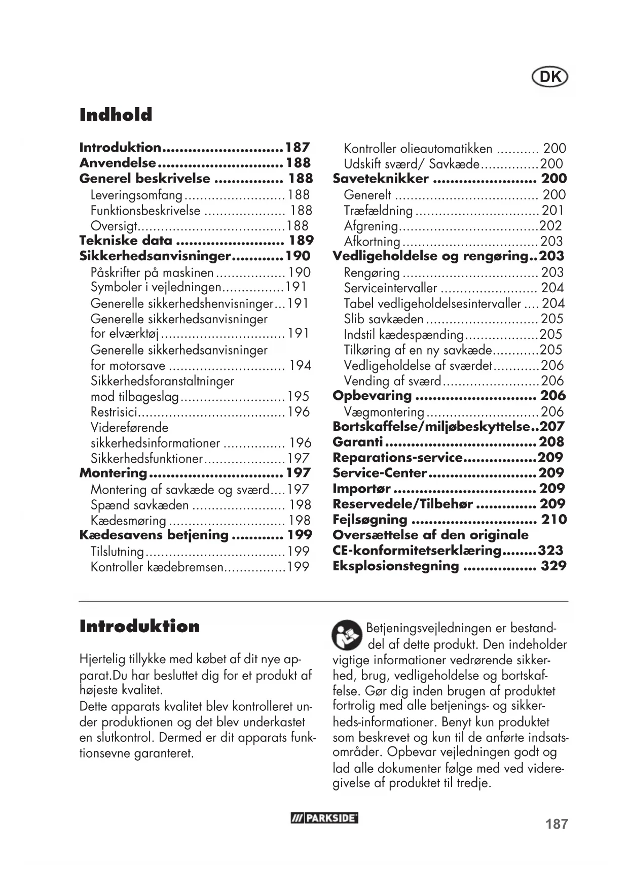 Garantiydselen gelder for materia-ller fabrikationsfejl. Denne garanti gelder不解 for Produktdele som er udsat for en normal nedslidning og derfor kan anses som sliddele (f.eks. savkade) aller for beskadigelsep aa skrobelige dele (f.eks.kontakter). Garantien bortfalder, hvis produktet bliver beskadiget, icke-formalsbestemt anvendt eller icke vedligeholdt. For en korrekt brug af produit kal alle i betjeningsvejledningen anforte anvisninger folges noje. Anvendelsesformal og handlinger, som der frarades aller advares imod i betjeningsvejledningen, skal ubetinget undgas.
