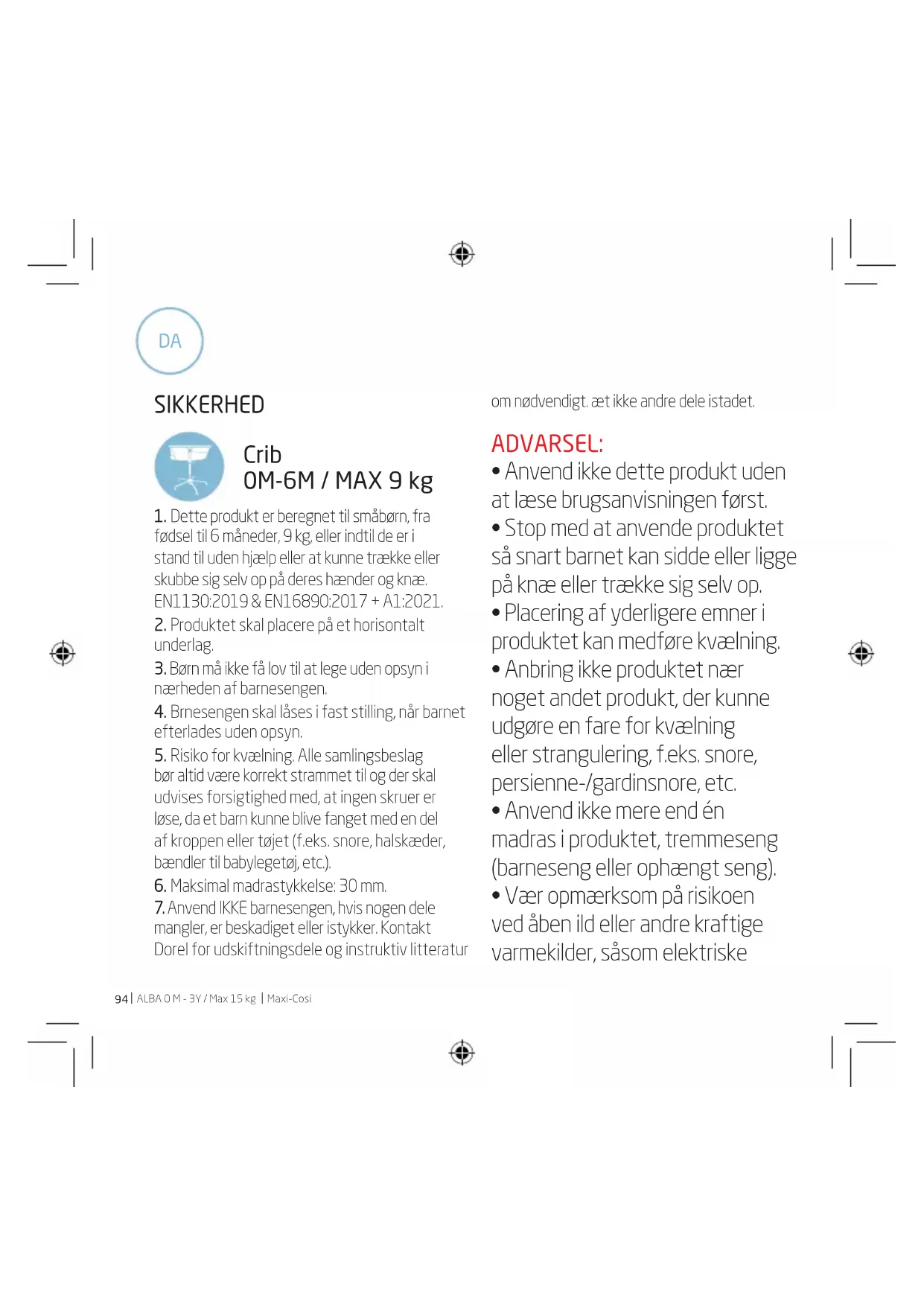 - Anvend kun madressen, der blev solgt med denne barneseng og tilføj ikke endnu en madras til denne, kvælningsfare. Vore produkter er blevet omhyggeligt deignet og testet for at sikre dit barns sikkerhed og komfort. EN 12790:2009. ADVARSEL: