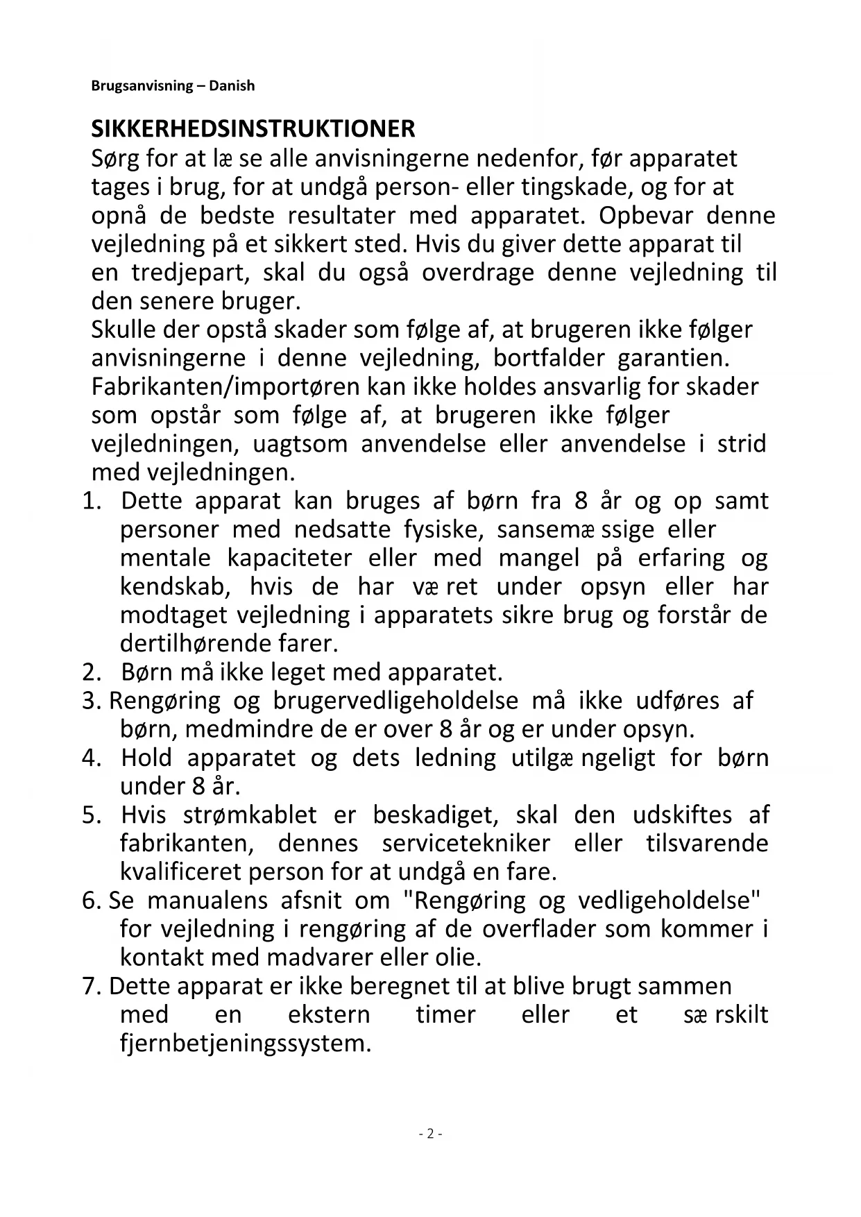 7. Dette apparat er ikke beregnet til at blive brugt sammen