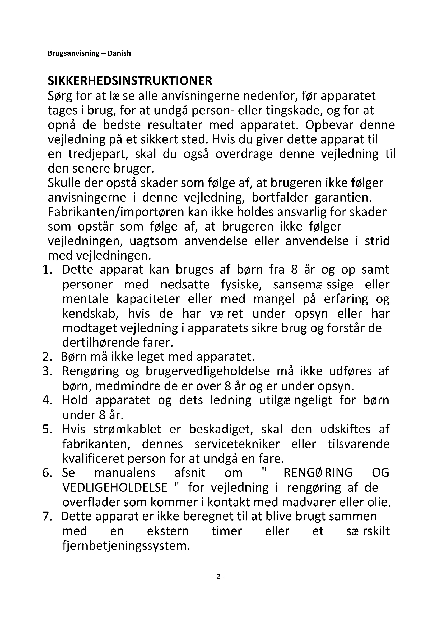 7. Dette apparat er ikke beregnet til at blive brugt sammen