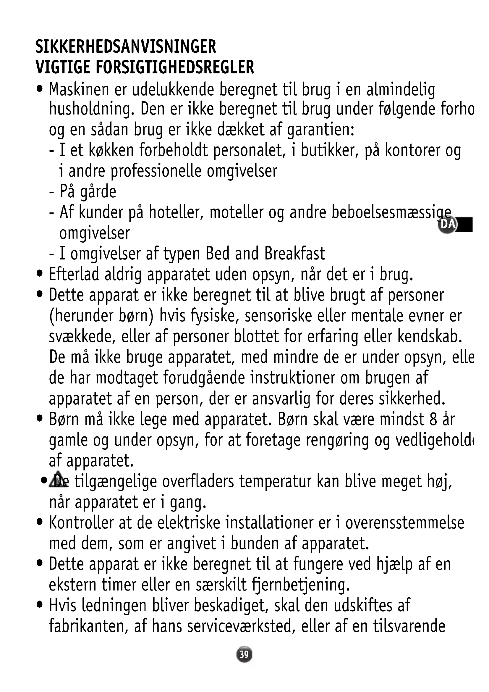 - Tak for Deres køb af dette apparat, designet udelukkende til husholdningsbrug.
