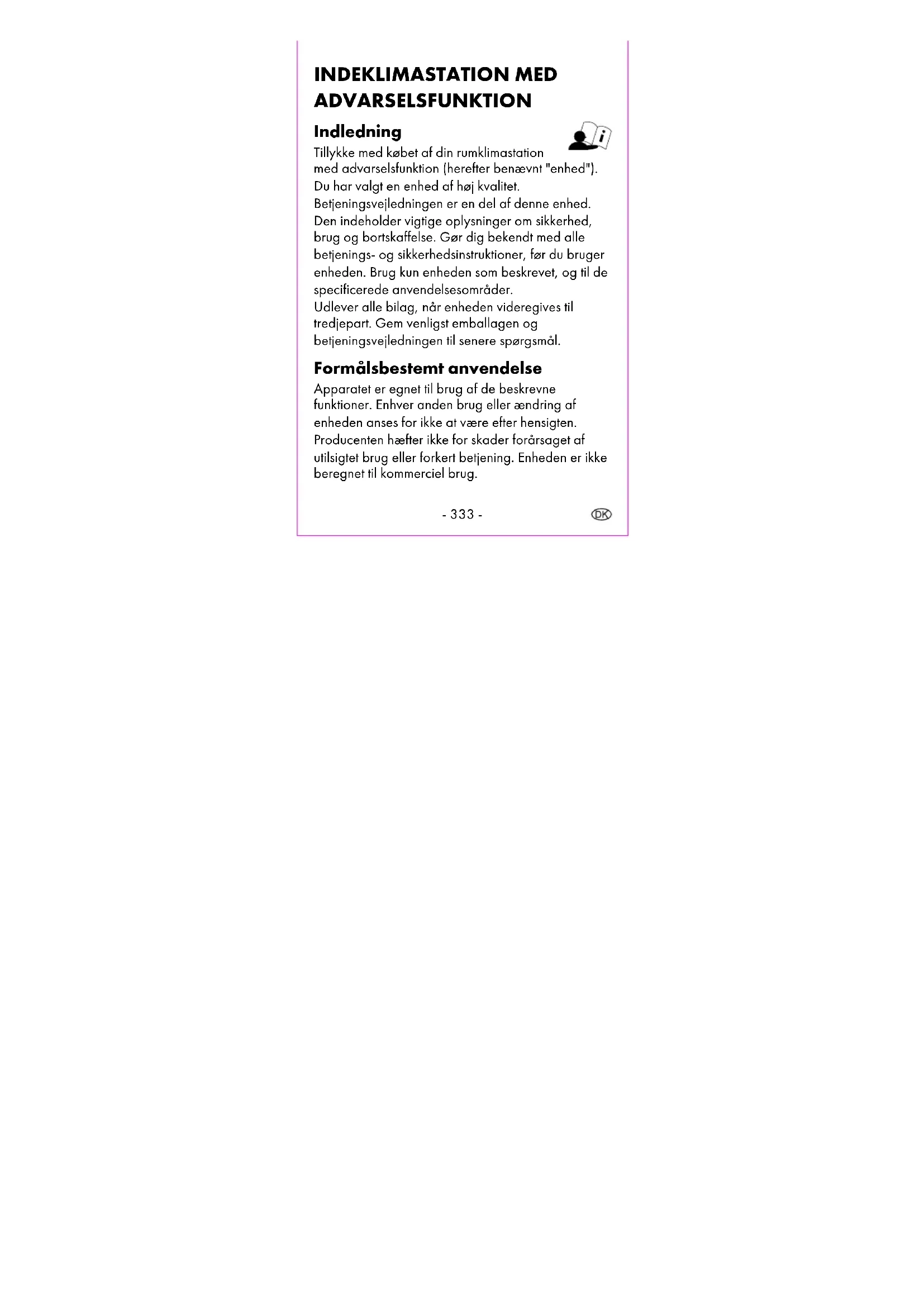 Betjenings- og sikkerhedshenvisninger ..................... - 331