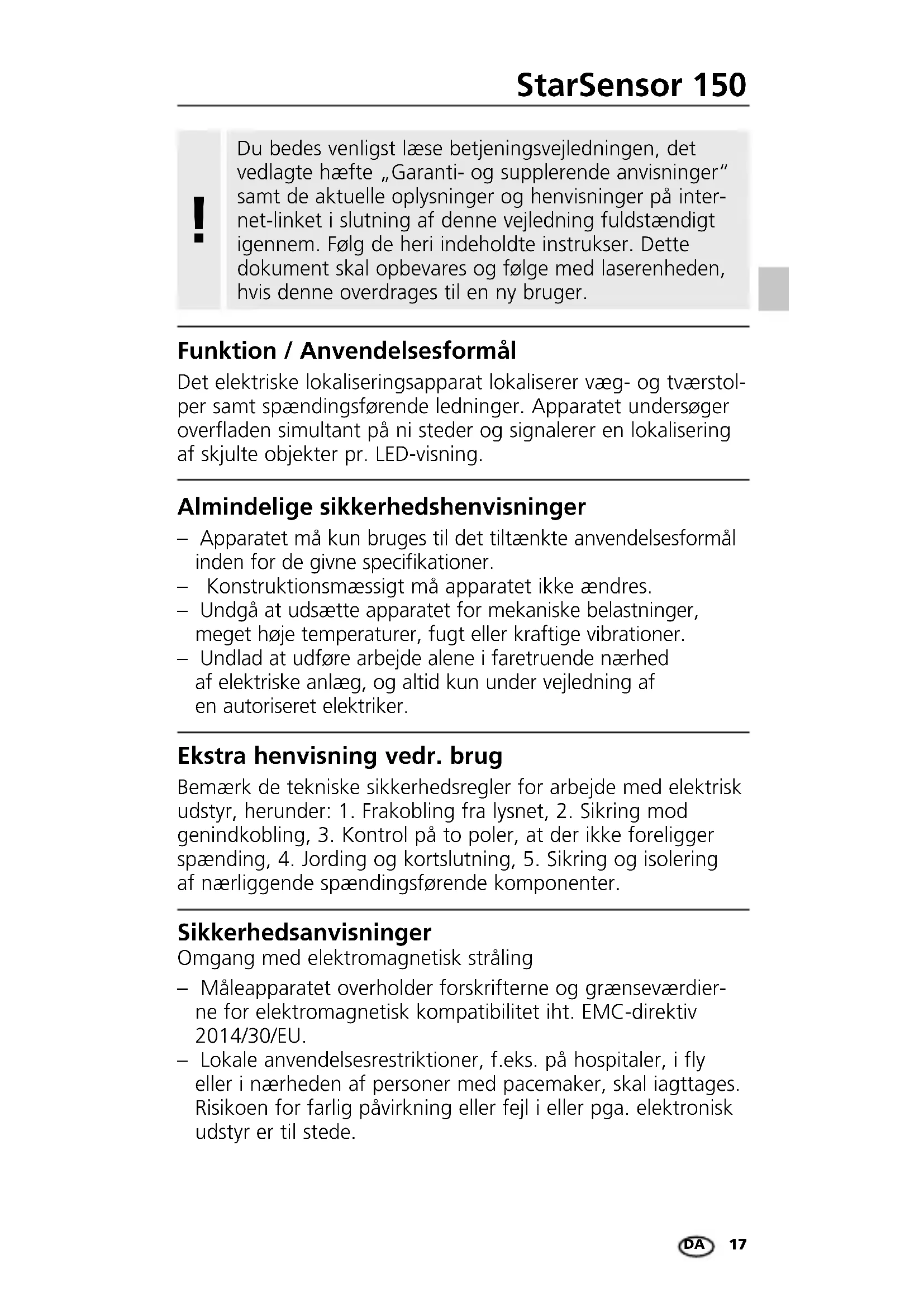 Find enhedens vejledning gratis StarSensor 150 Laserliner i PDF-format.