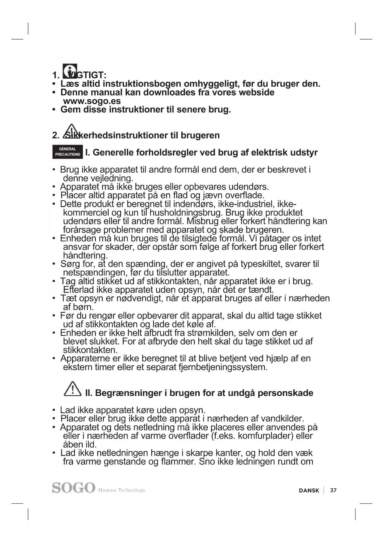 2. Sikkerhedsinstruktioner til brugeren