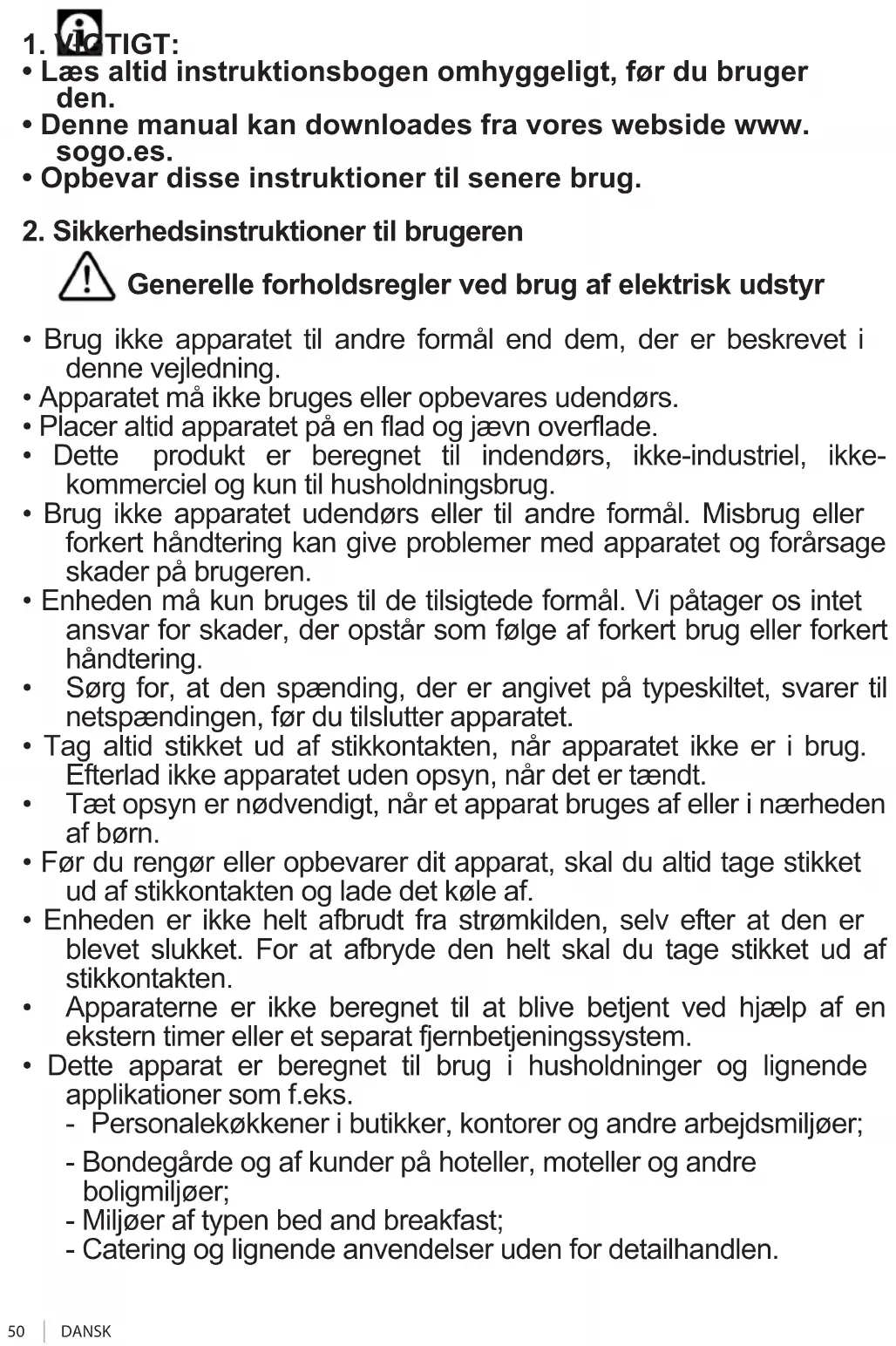 Find enhedens vejledning gratis SS10340 Sogo i PDF-format.