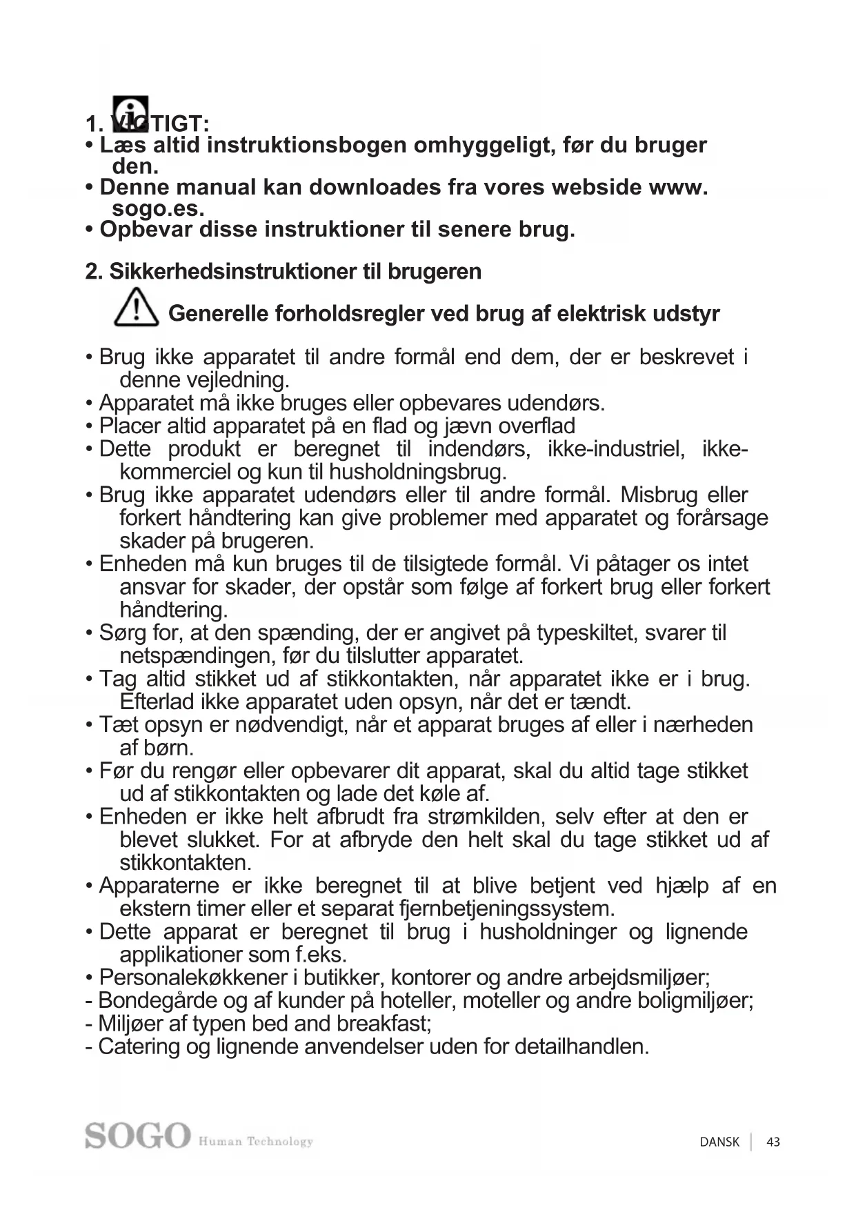 Find enhedens vejledning gratis SS7715 Sogo i PDF-format.