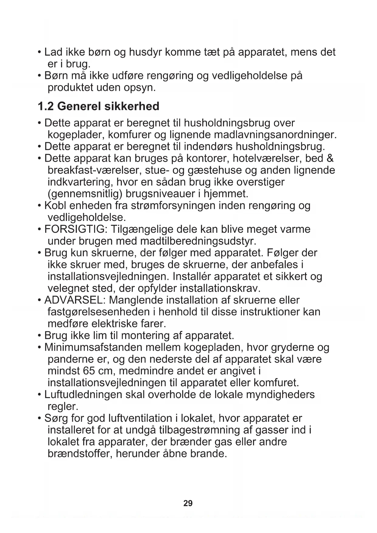 - Dette apparat er beregnet til husholdningsbrug over kogeplader, komfurer og lignende madlavningsanordninger.