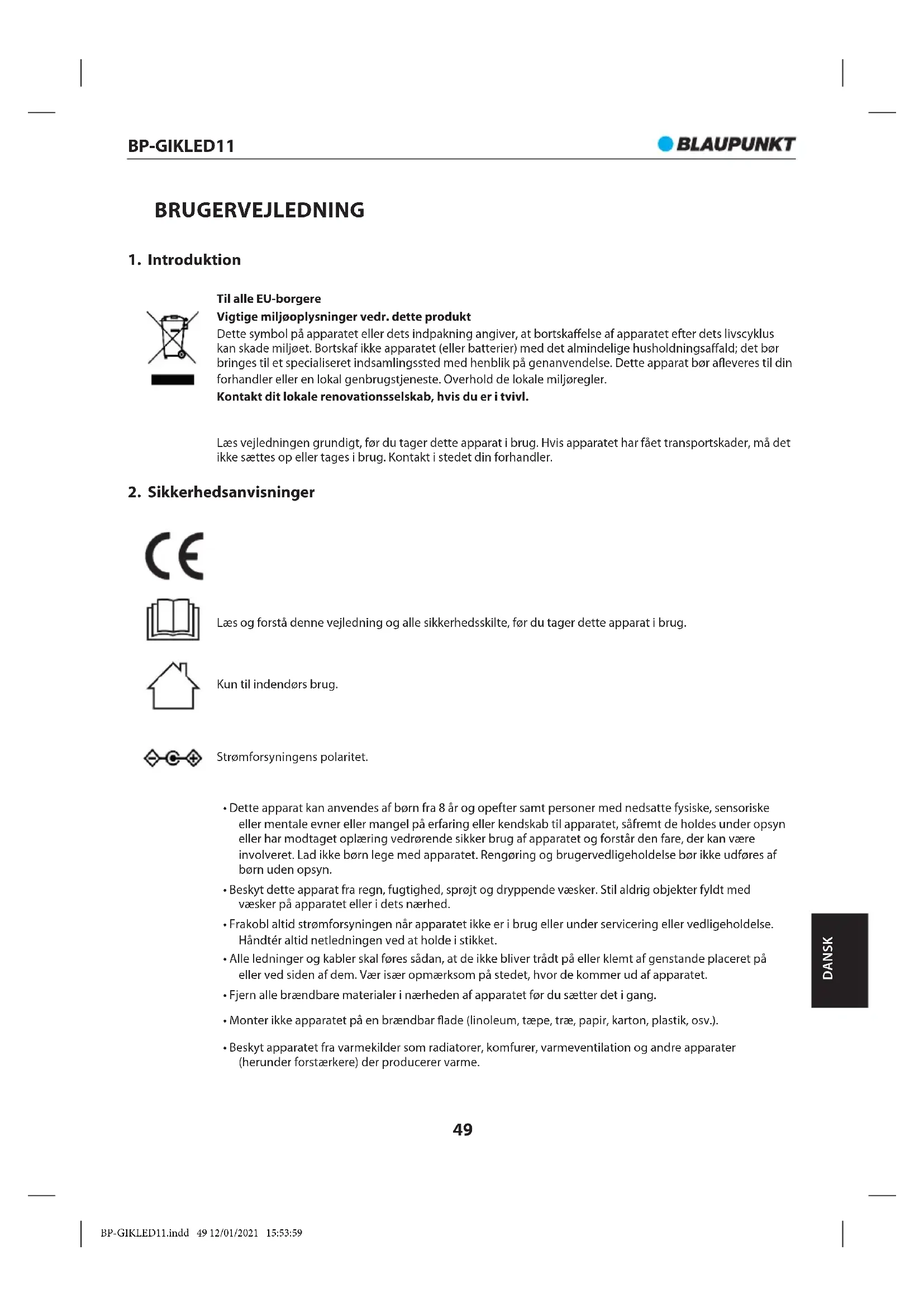 Download vejledningen til din Skadedyrsbekæmpelse i PDF-format gratis! Find din vejledning BPGIKLED11 - BLAUPUNKT og tag din elektroniske enhed tilbage i hånden. På denne side er alle dokumenter nødvendige for brugen af din enhed offentliggjort. BPGIKLED11 af mærket BLAUPUNKT.