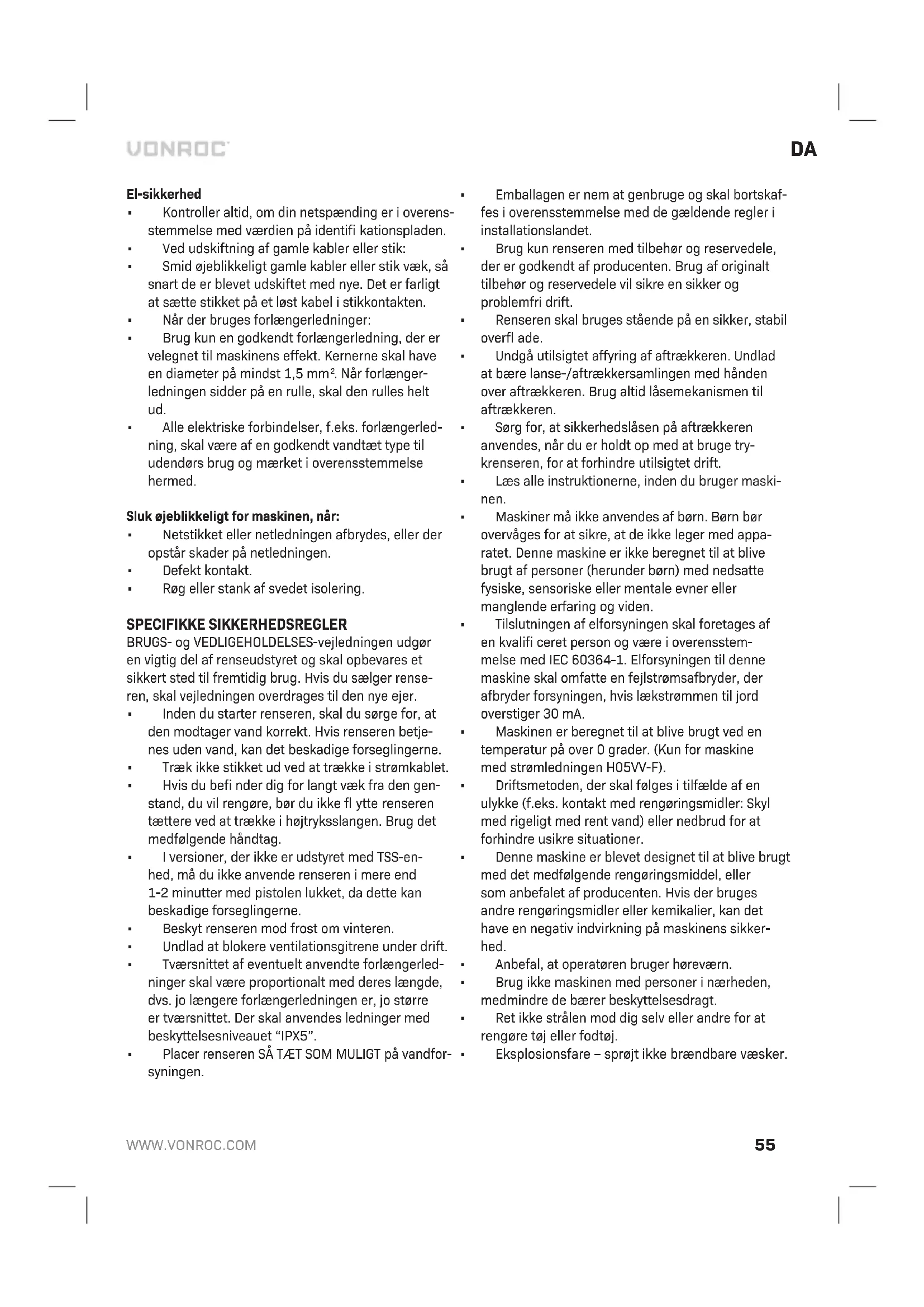 PW502AC - Højtryksrenser Vonroc - Gratis brugsanvisning og manual