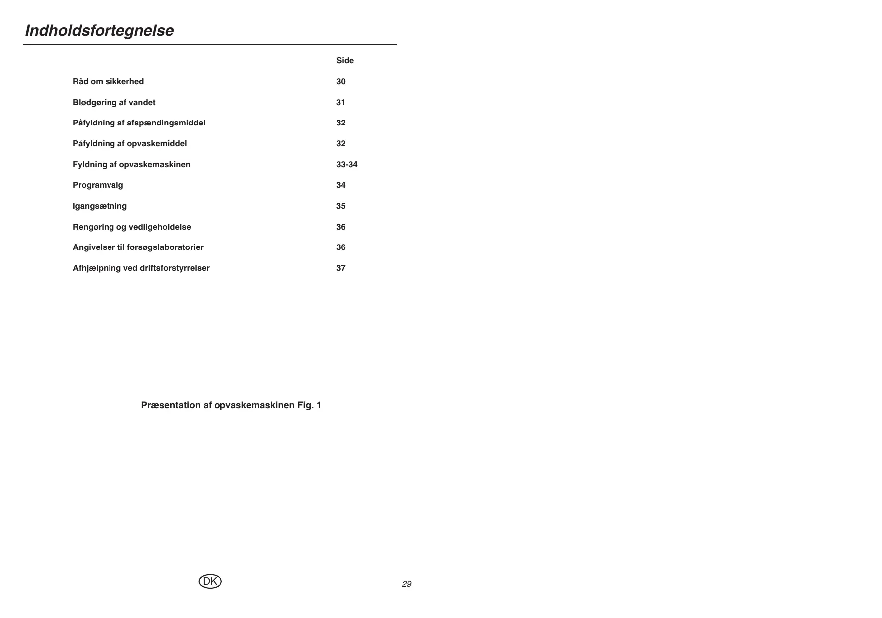 Præsentation af opvaskemaskinen Fig. 1