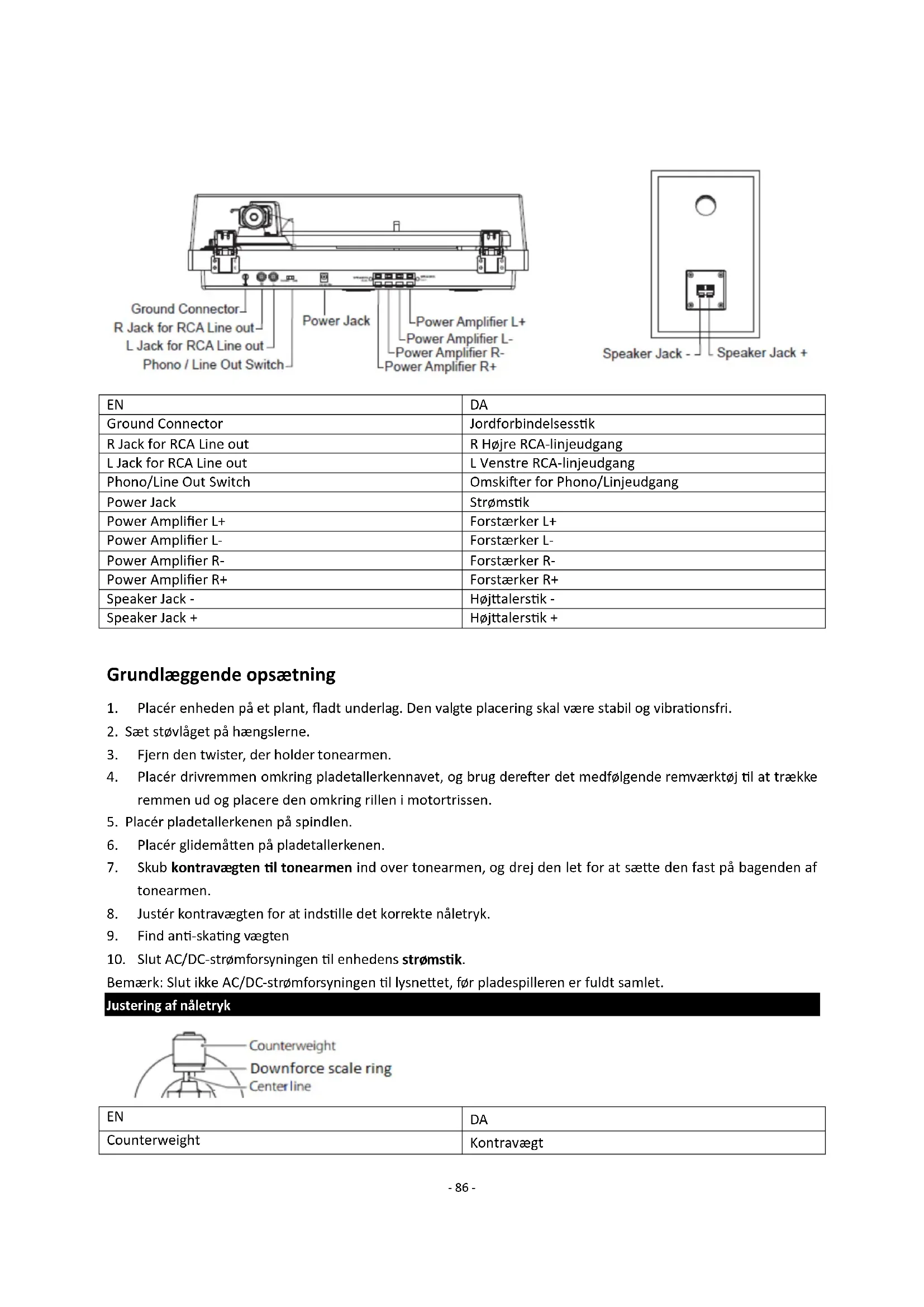 - Slut ikke enheden til lysnettet, før du har kontrolleret forsyningsspændingen og foretaget alle nødvendige tilslutninger.- 85 - Produktoversigt