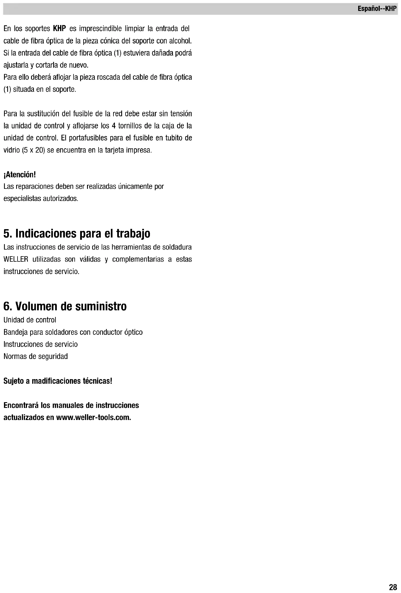 Styreenhed Loddekolbeholder med lysleder Driftsvejledning Sikkerhedshenvisninger Ret til tekniske ændringer forbeholdes! De aktuelle betjeningsvejledninger findes på www.weller-tools.com.Português--KHE