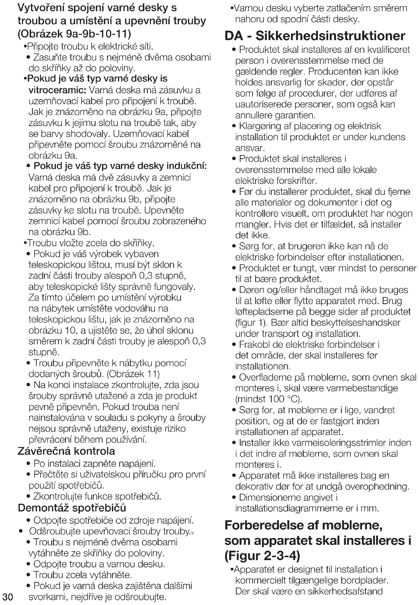 - Apparatet er designet til installation i kommercielt tilgængelige bordplader. Der skal være en sikkerhedsafstand31 mellem apparatet og køkkenvæggene og møblerne. (Figur 2-3)