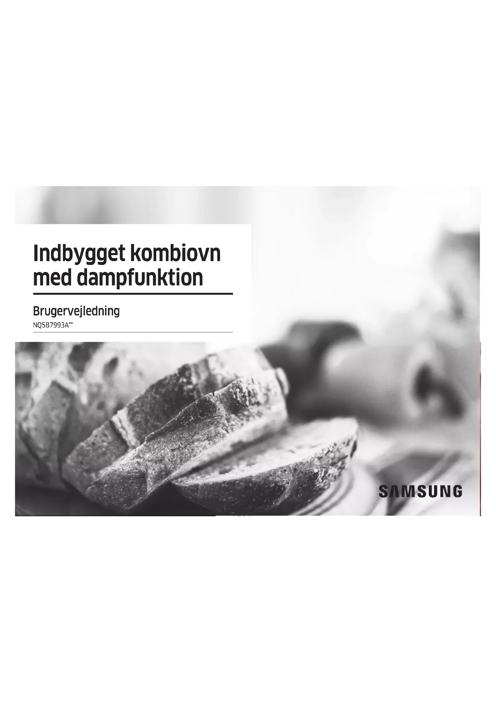 Chamada para a rede xa nacional Dias úteis das 9h às 20h www.samsung.com/pt/support SPAIN 91 175 00 15 www.samsung.com/es/support SWEDEN 0771-400 300 www.samsung.com/se/support SWITZERLAND 0800 726 786 www.samsung.com/ch/support (German) www.samsung.com/ch_fr/support (French) UK 0333 000 0333 www.samsung.com/uk/support IRELAND (EIRE) 0818 717100 www.samsung.com/ie/support DG68-01432A-02Indbygget kombiovn med dampfunktion Brugervejledning NQ5B7993A**2 Dansk Indhold Indhold Brug af denne vejledning 3 Følgende symboler anvendes i denne brugervejledning 3 Sikkerhedsvejledning 3 Vigtige sikkerhedsanvisninger 3 Korrekt bortskaffelse af dette produkt (elektrisk & elektronisk udstyr) 6 Installation 7 Medfølgende dele 7 Installationsinstruktioner 8 Installation i skabet 8 Før du går i gang 11 Betjeningspanel 11 Oprindelige indstillinger 11 Sideholdere 12 Vandbeholder 13 Automatisk dør 14 Brug 14 Ovnfunktioner 14 Dampassisterede funktioner 16 Specialfunktioner 18 Automatisk tilberedning 19 Automatisk afrimning 20 Timer 21 Rengøring 21 Indstillinger 23 Lås 24 Smart tilberedning 25 Automatisk tilberedning 25 Automatisk afrimning 29 Manuel tilberedning 30 Prøvefade 36 Vedligeholdelse 37 Rengøring 37 Åbning af døren manuelt 38 Udskiftning af dele (reparation) 39 Vedligeholdelse i forbindelse med længere periode uden brug 39 Fejlfinding 39 Kontrolpunkter 39 Informationskoder 43 Tekniske specifikationer 43 Tillæg 44 Produktdatablad 44 Bekendtgørelse om Open Source 45Dansk 3 Brug af denne vejledning Brug af denne vejledning Tak, fordi du har valgt SAMSUNG's indbygget ovn. Denne brugervejledning indeholder vigtige oplysninger om sikkerhed og instruktioner, som skal hjælpe dig med at betjene og vedligeholde dit apparat. Tag dig tid til at læse denne brugervejledning, før du bruger ovnen, og opbevar bogen til senere brug. Følgende symboler anvendes i denne brugervejledning ADVARSEL Farer eller usikker anvendelse der kunne resultere i alvorlig personskade eller skade på ejendom. FORSIGTIG Farer eller usikker anvendelse der kunne resultere i personskade og/eller skade på ejendom. BEMÆRK Nyttige tips, anbefalinger eller oplysninger, der hjælper brugerne med at håndtere produktet. Sikkerhedsvejledning Installation af denne ovn må kun udføres af en autoriseret elektriker. Installatøren er ansvarlig for at tilslutte apparatet til lysnettet under overholdelse af de relevante sikkerhedsanbefalinger. Vigtige sikkerhedsanvisninger ADVARSEL Dette udstyr er ikke beregnet til at blive brugt af personer (herunder børn) med nedsatte fysiske, sansemæssige eller mentale færdigheder eller manglende erfaring og viden, medmindre de har fået oplæring eller anvisninger vedrørende sikker brug af apparatet af en person, der er ansvarlig for deres sikkerhed. Børn bør overvåges for at sikre, at de ikke leger med udstyret. Frakoblingsanordningen skal monteres på det faste kabel i overensstemmelse med installationsbestemmelserne. Det skal være muligt at koble apparatet fra strømforsyningen efter installationen. Frakobling kan gøres mulig, ved at der er adgang til stikket eller ved at montere en afbryder på den faste kabling i henhold til installationsbestemmelser. Hvis strømkablet beskadiges, skal det udskiftes af producenten, et serviceværksted eller en tilsvarende kvalificeret person for at undgå fare.4 Dansk Sikkerhedsvejledning Sikkerhedsvejledning Hvis dette apparat har en rensefunktion, skal overskydende spild fjernes før rengøring, og alle redskaber bør ikke efterlades i ovnen under damprensning eller selvrens. Rengøringsfunktionen afhænger af model. Hvis dette apparat har en rensefunktion, kan overflader under rensning blive varmere end normalt, og børn skal holdes borte. Rengøringsfunktionen afhænger af model. Brug kun den temperatursonde, der anbefales til denne ovn. (Kun kødsondemodel) En damprenser ikke må anvendes. ADVARSEL: Sørg for, at ovnen er slukket, før du udskifter pæren, for at undgå risiko for elektrisk stød. Apparatet må ikke installeres bag en pyntedør på grund af risiko for overophedning. ADVARSEL: Udstyret og dets tilgængelige dele bliver varme under brug. Vær opmærksom på ikke at berøre varmeelementerne. Børn på under 8 år skal holdes på afstand, hvis de ikke er under konstant tilsyn. FORSIGTIG: Tilberedningsprocessen skal overvåges. En kortvarig tilberedningsproces skal overvåges uafbrudt. Den angivne metode til fastgørelse må ikke afhænge af brug af klæbemidler, da disse ikke betragtes som pålidelige fastgørelsesmidler. Ovnen kan anvendes af børn på 8 år og derover og personer med nedsatte fysiske, sansemæssige eller mentale færdigheder eller manglende erfaring og viden, hvis de har fået oplæring eller anvisninger vedrørende sikker brug af apparatet og forstår, hvilke farer det medfører. Børn må ikke lege med apparatet. Rengøring og brugervedligeholdelse må ikke udføres af børn uden overvågning. Hold ovnen og dets kabel uden for rækkevidde af børn under 8 år. Under brug bliver apparatet varmt. Vær opmærksom på ikke at berøre varmeelementerne inde i ovnen. ADVARSEL: Tilgængelige dele kan blive varme under brug. Mindre børn bør holdes på afstand. Brug ikke hårde, slibende rengøringsmidler eller metalskrabere til rengøring af glasset i ovndøren, da disse kan ridse overfladen, og det kan medføre, at glasset splintres.Dansk 5 Sikkerhedsvejledning Hvis dette apparat har en damptilberedningsfunktion, må du ikke bruge dette apparat, når vandforsyningspatronen er beskadiget. (Kun på model med dampfunktion) Når patronen er revnet eller i stykker, må den ikke bruges, og du skal kontakte dit nærmeste servicecenter. (Kun på model med dampfunktion) Denne ovn er kun designet til tilberedning af husholdningsmad. Under brug bliver ovnens indre overflader varme nok til at forårsage forbrændinger. Du må ikke røre ved varmeelementer eller de indvendige overflader af ovnen, før de har nået at køle af. 