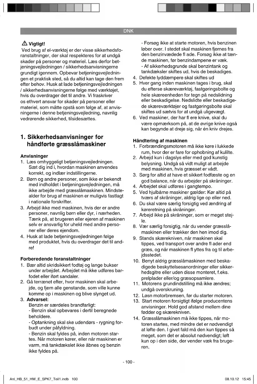 1. Sikkerhedsanvisninger for håndførte græsslåmaskiner