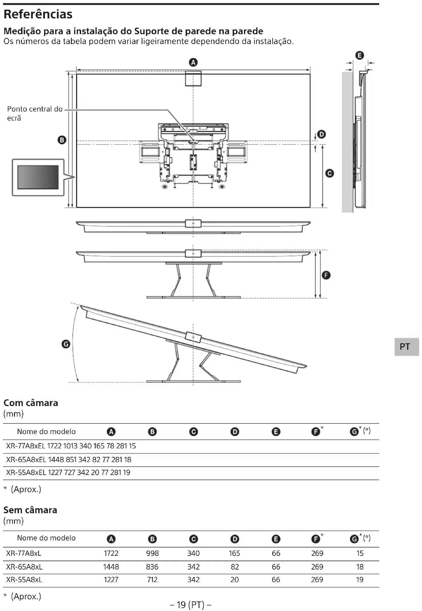 - (Aprox.)− 2 (DK) − Oplysninger om montering med Sonys beslag til vægmontering (SU-WL850) Understøttede modeller*: