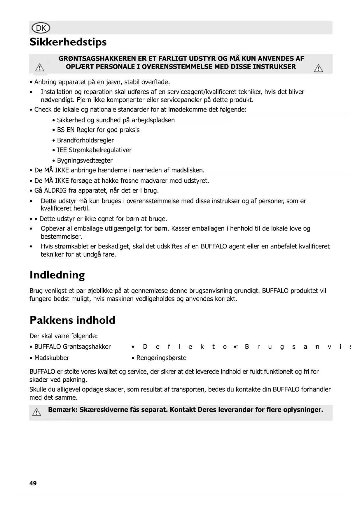 Brug venligst et par øjeblikke på at gennemlæse dette brugsanvising grundigt. BUFFALOprodukter vil fungere bedst muligt, hvis maskinen vedligeholds og anvendes korrekt.
