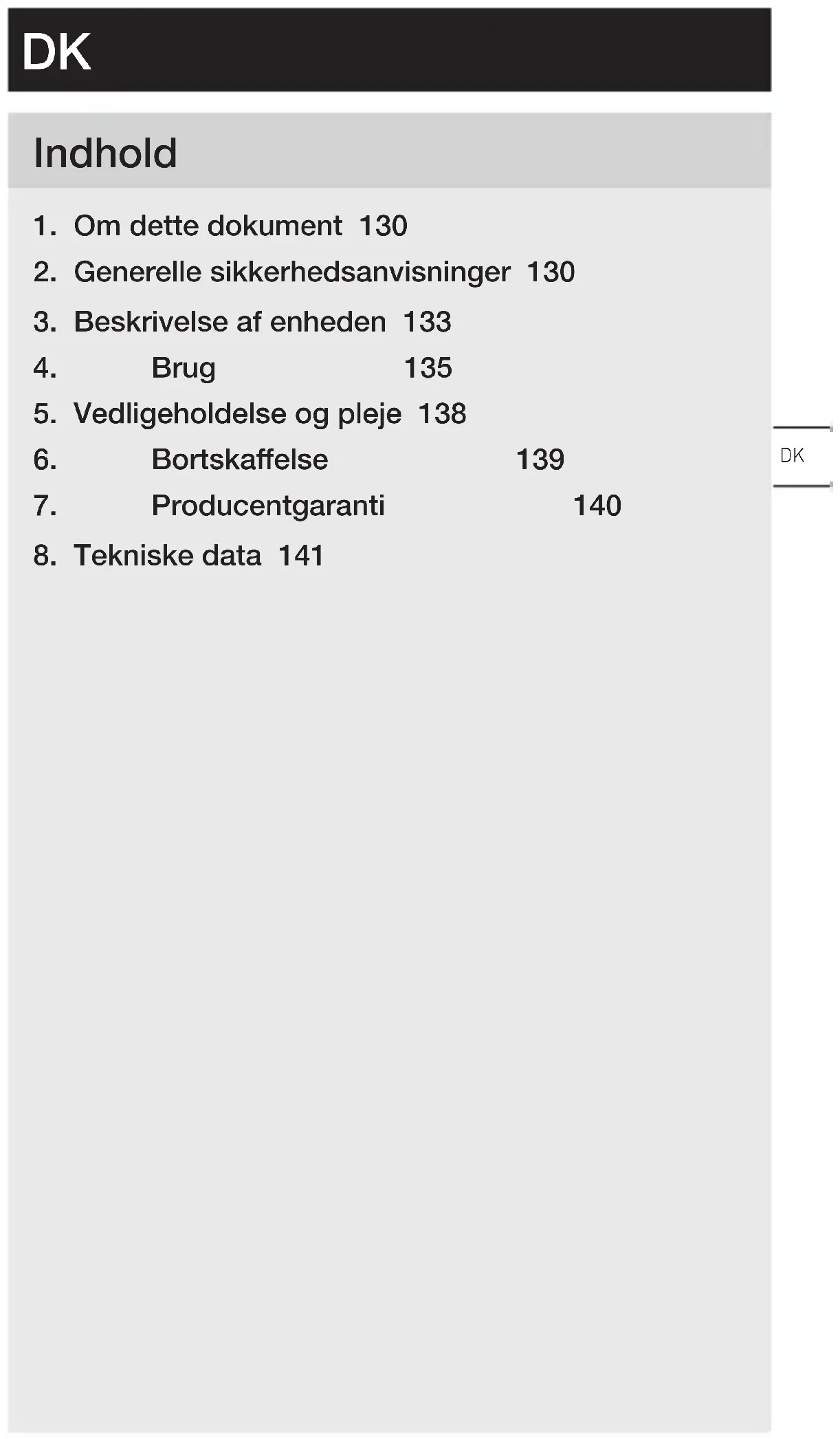 - Må ikke anvendes sammen med letantændelige/ brændbare stoer.DK – 131 – Indhold
