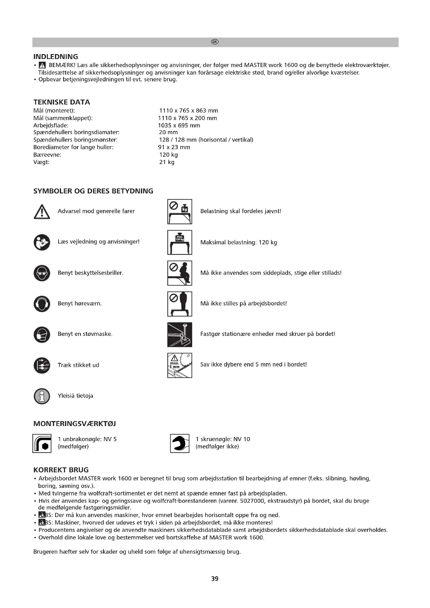 BRUGSANVISNING MASTER work 1600 WOLFCRAFT