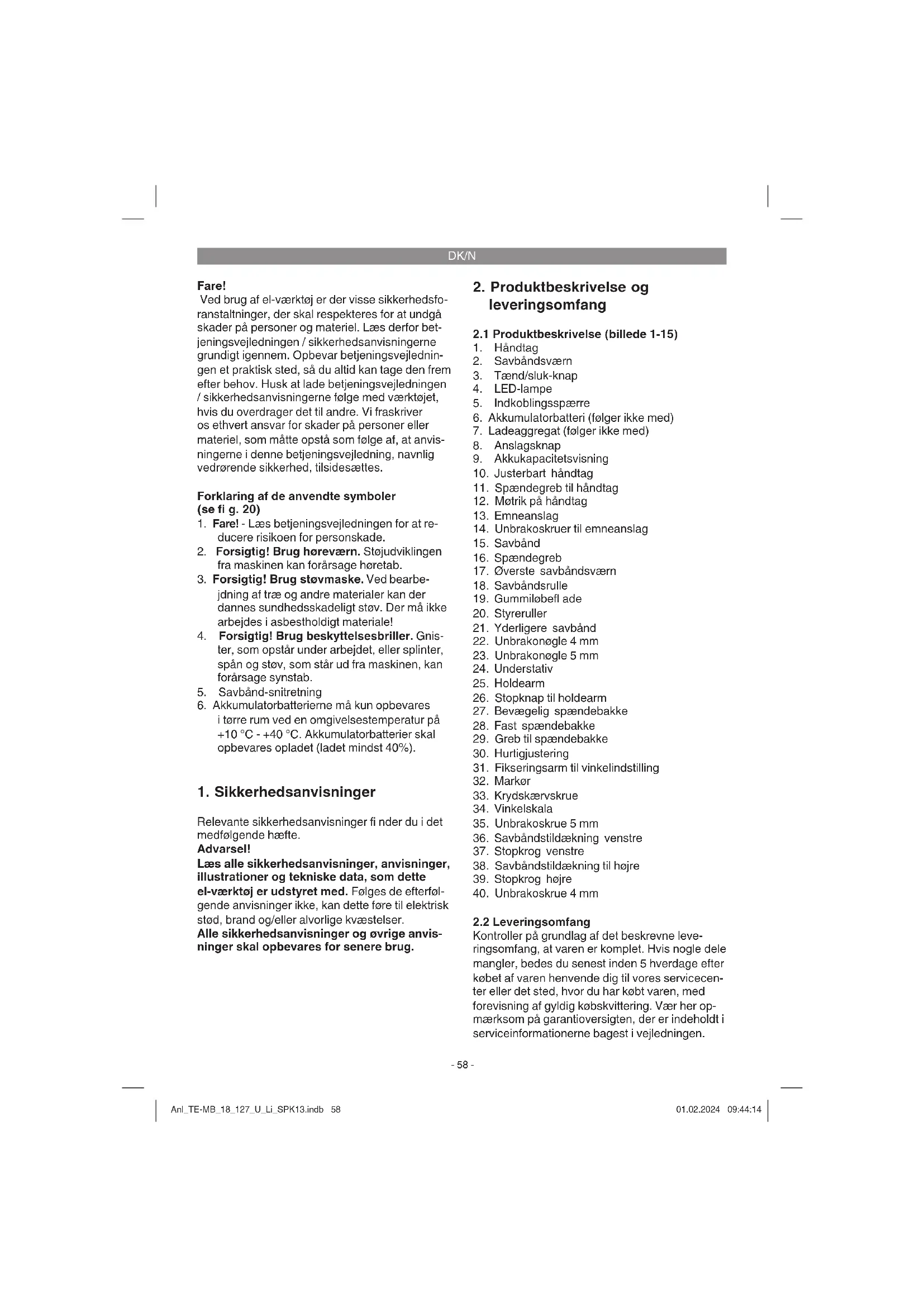 Alle afskærmninger og sikkerhedsanordnin- ger skal være korrekt påmonterede, inden maskinen tages i brug. Anl_TE-MB_18_127_U_Li_SPK13.indb 60Anl_TE-MB_18_127_U_Li_SPK13.indb 60 01.02.2024 09:44:1501.02.2024 09:44:15DK/N