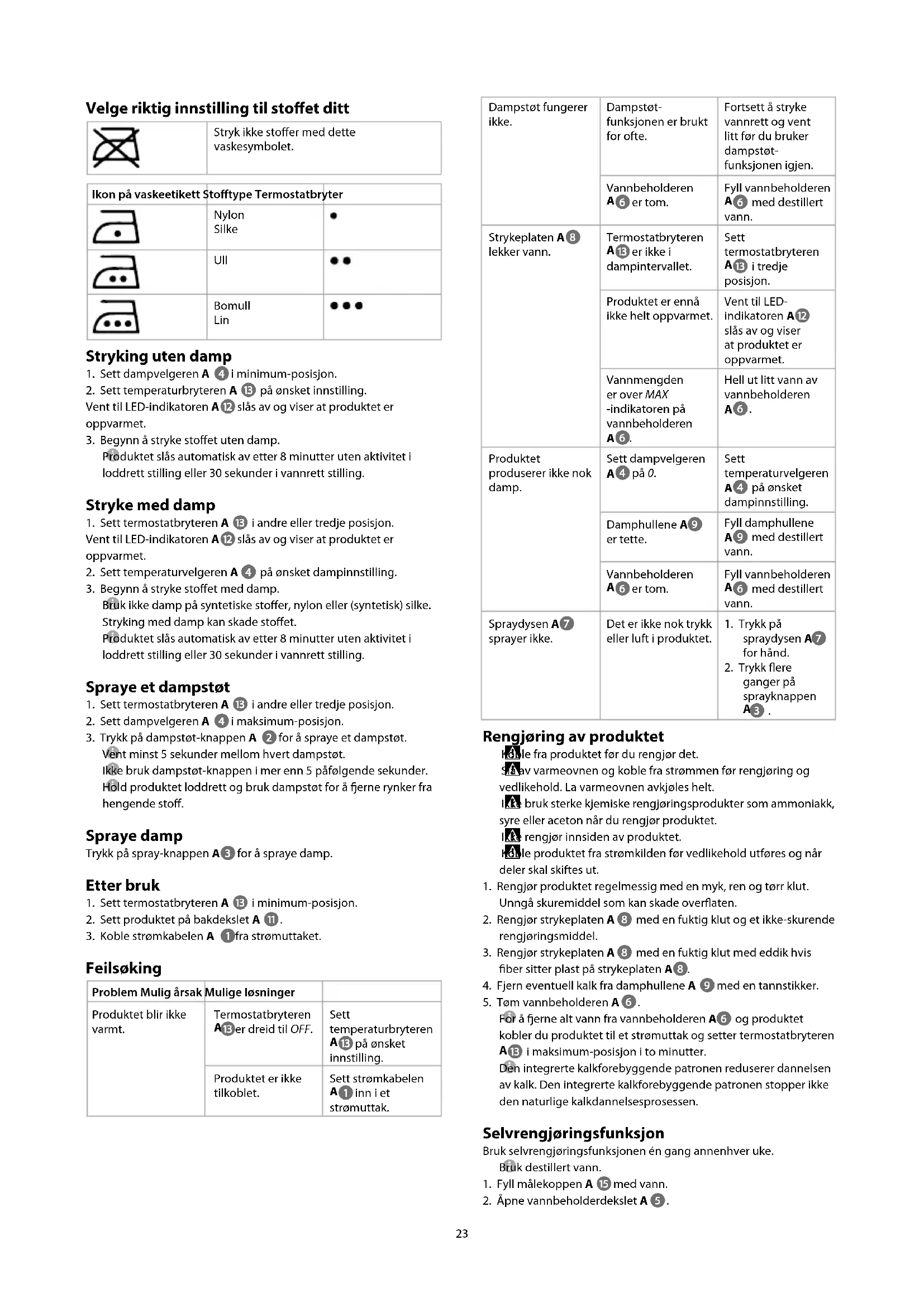 Du må ikke dampstryge syntetisk stof, nylon eller (syntetisk) silke. Dampstrygning af disse stoer kan beskadige stoet.