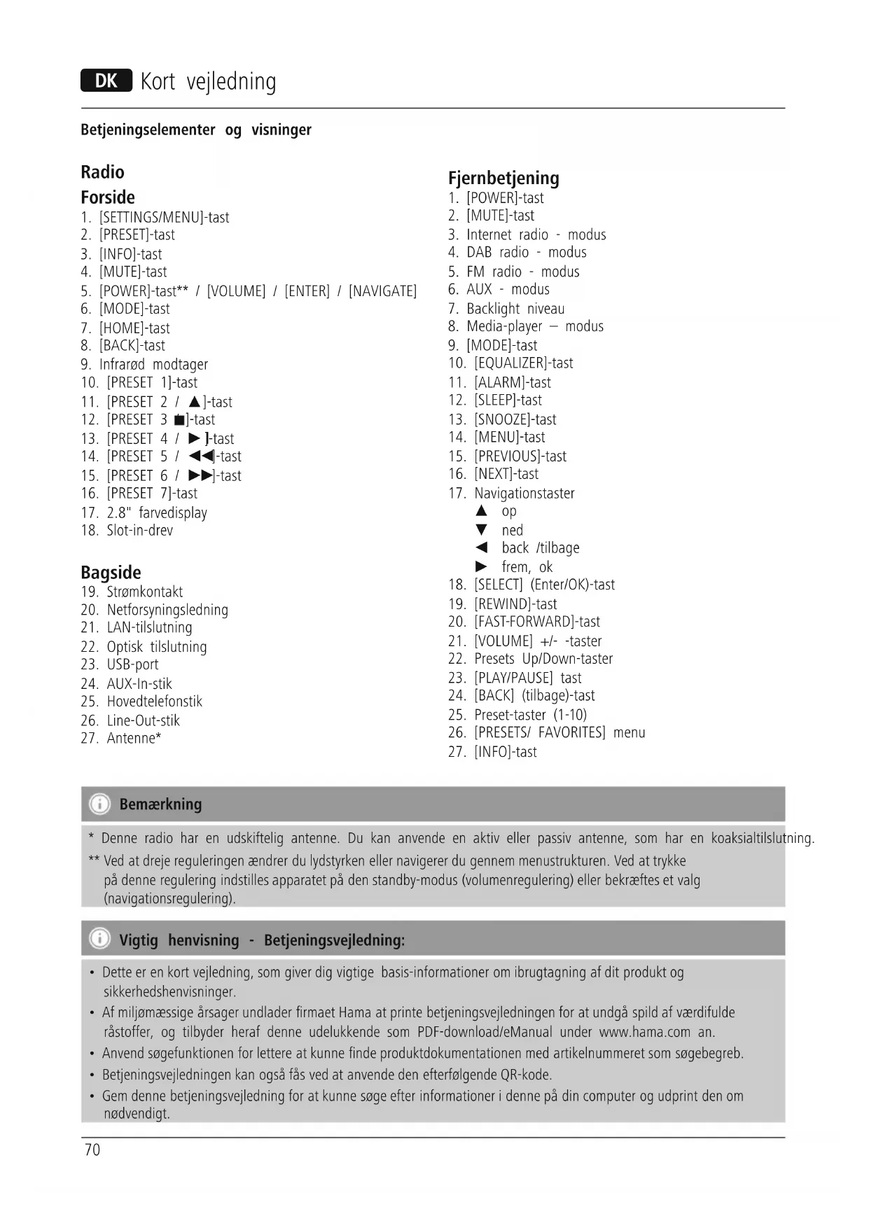- Af miljømæssige årsager undlader rmaet Hama at printe betjeningsvejledningen for at undgå spild af værdifulde råstoffer, og tilbyder heraf denne udelukkende som PDF-download/eManual under www.hama.com an.