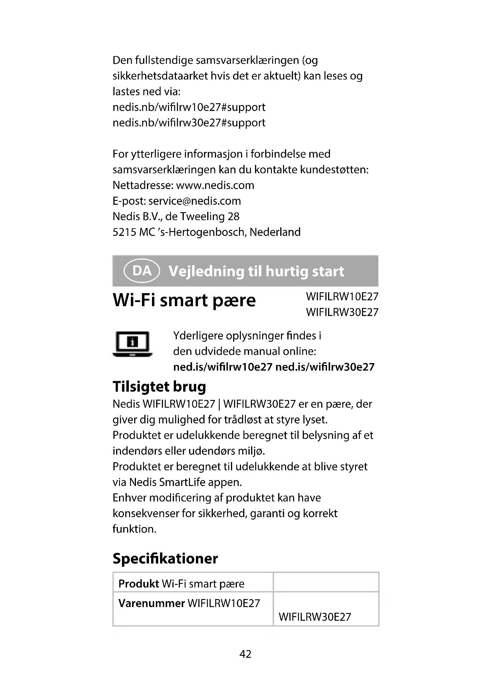 BRUGSANVISNING WIFILRW10E27 NEDIS