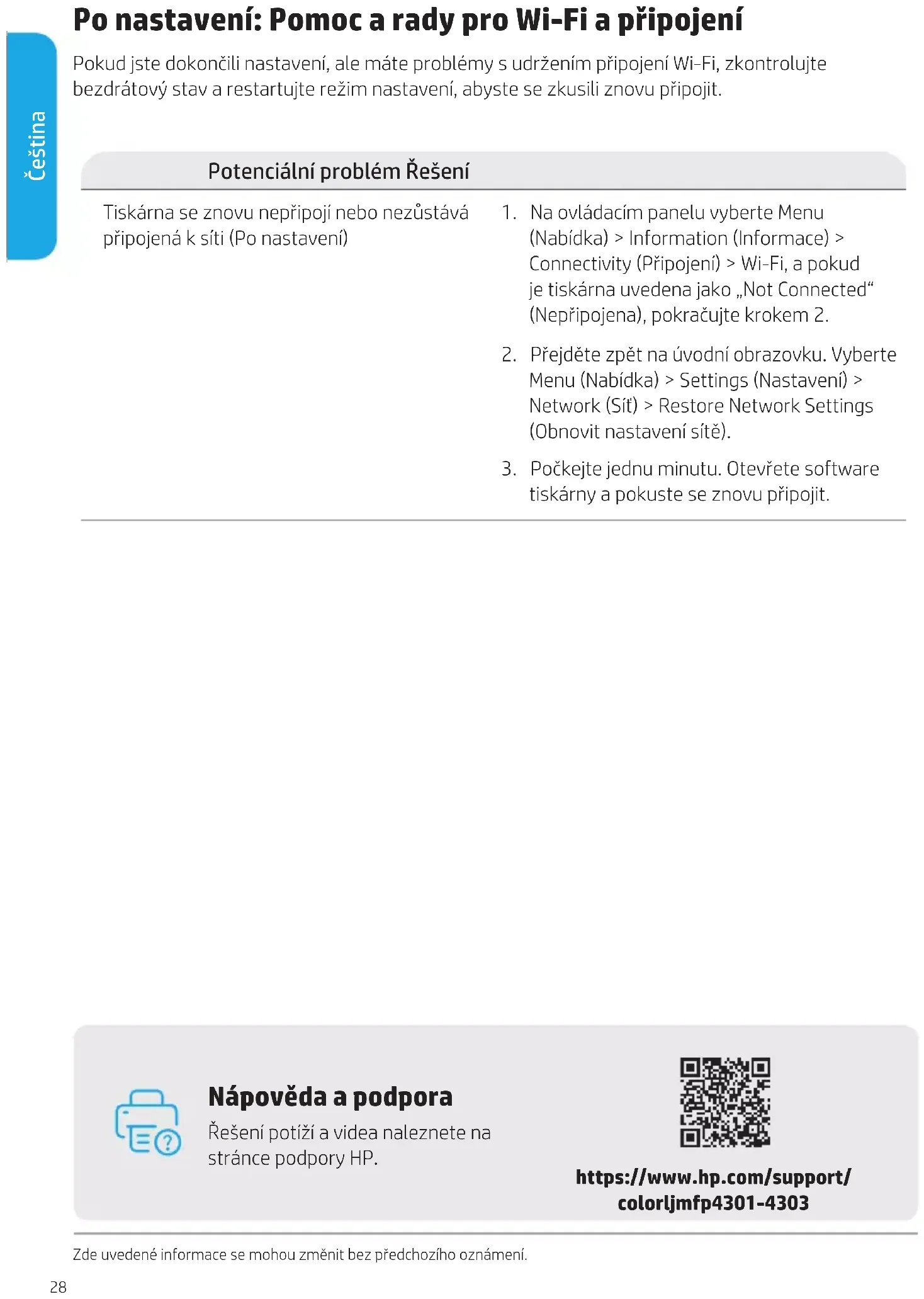 - Kun faxmodeller Bakke 2831 Dansk Efter opsætning: Hjælp og tips vedrørende Wi-Fi og konnektivitet Hvis du efter fuldført opsætning får problemer med at opretholde Wi-Fi-forbindelsen, skal du kontrollere den trådløse status, og genstarte opsætningstilstanden for at forsøge at genopretteforbindelse. Potentielt problem Løsning Printer vil ikke genoprette forbindelse, ellernetværksforbindelsen kan ikke opretholdes (efter opsætning)