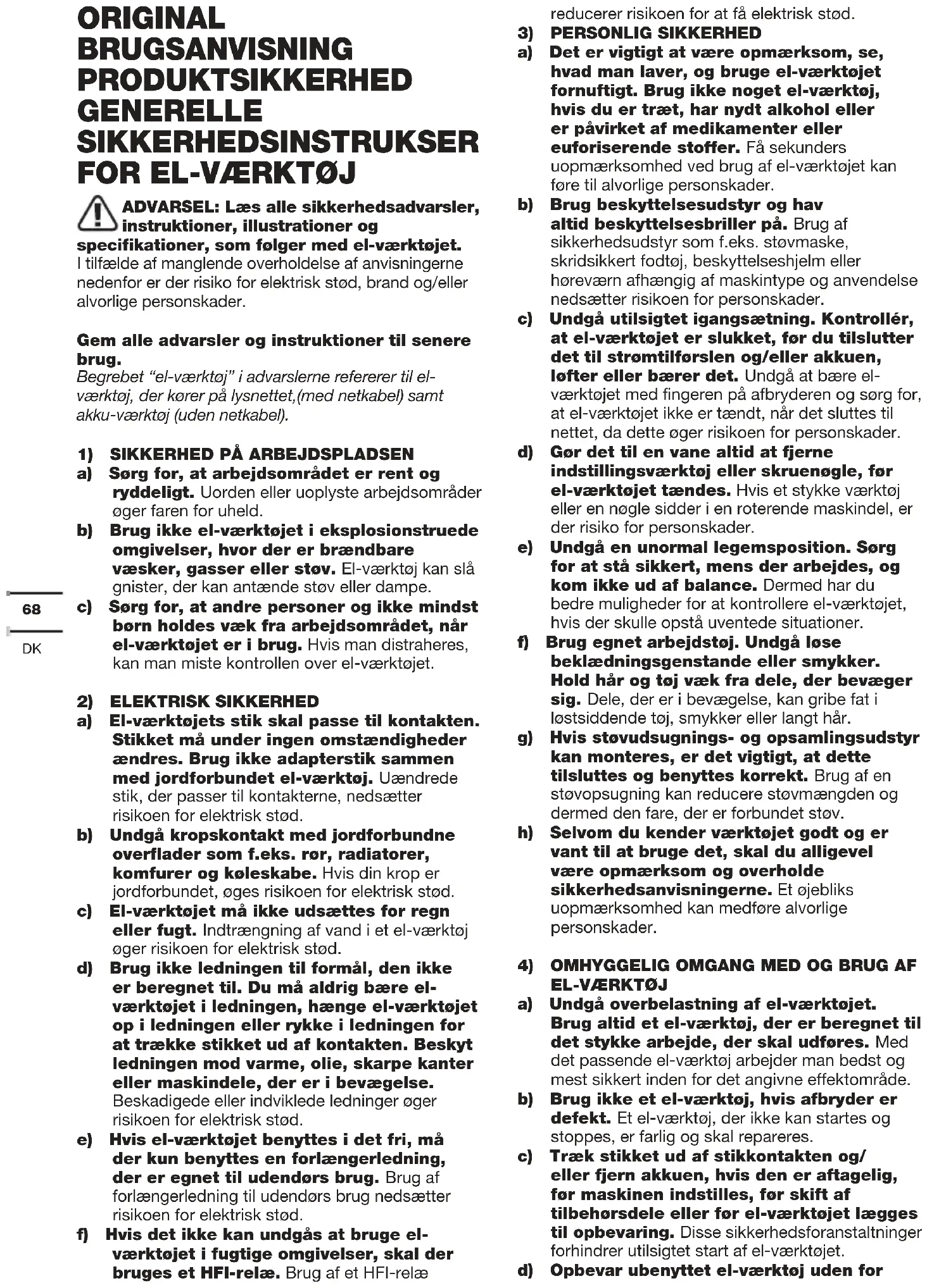 1) Sikkerhedsinstruktioner til alt arbejde