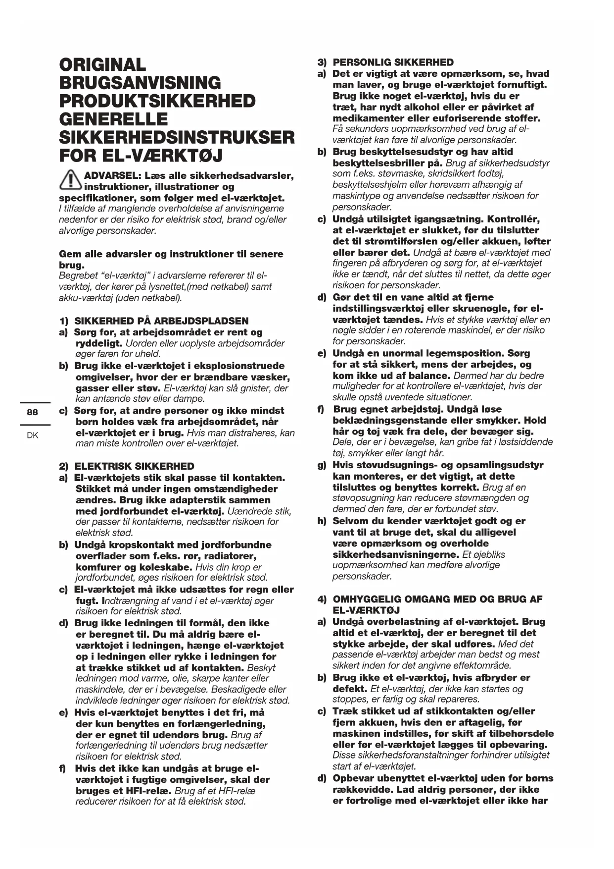 a) Sørg for, at el-værktøj kun repareres af kvalificerede fagfolk og at der kun benyttes originale reservedele. Dermed sikres størst mulig maskinsikkerhed. SIKKERHEDSANVISNINGER