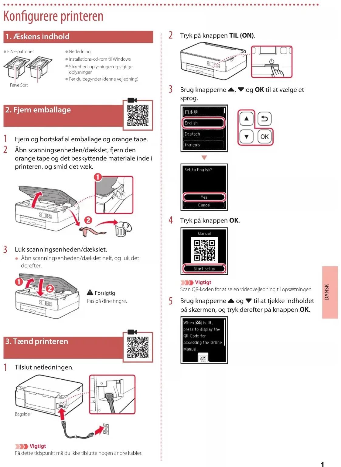 FINE-patronerFarve Sort Netledning Installations-cd-rom til Windows Sikkerhedsoplysninger og vigtige oplysninger Før du begynder (denne vejledning)