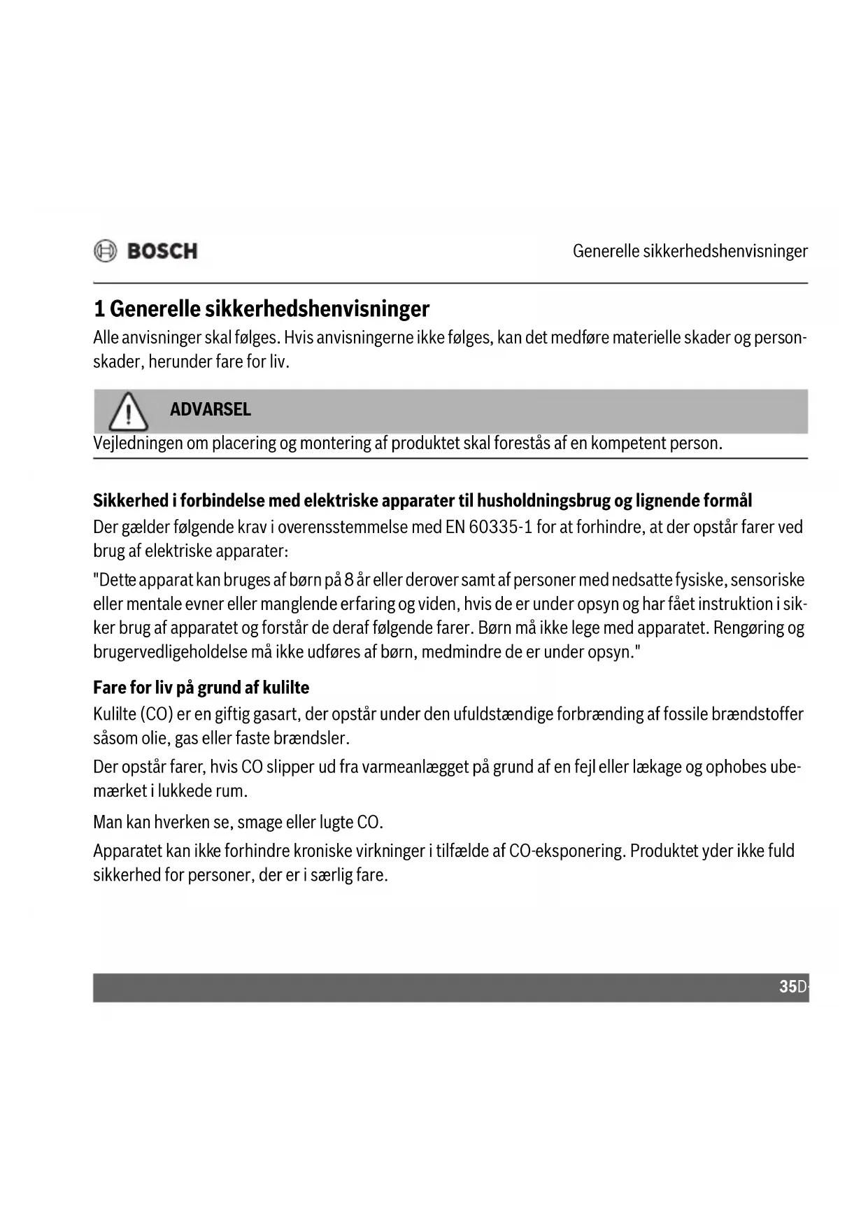 D-CO - Gasdetektor BOSCH - Gratis brugsanvisning og manual