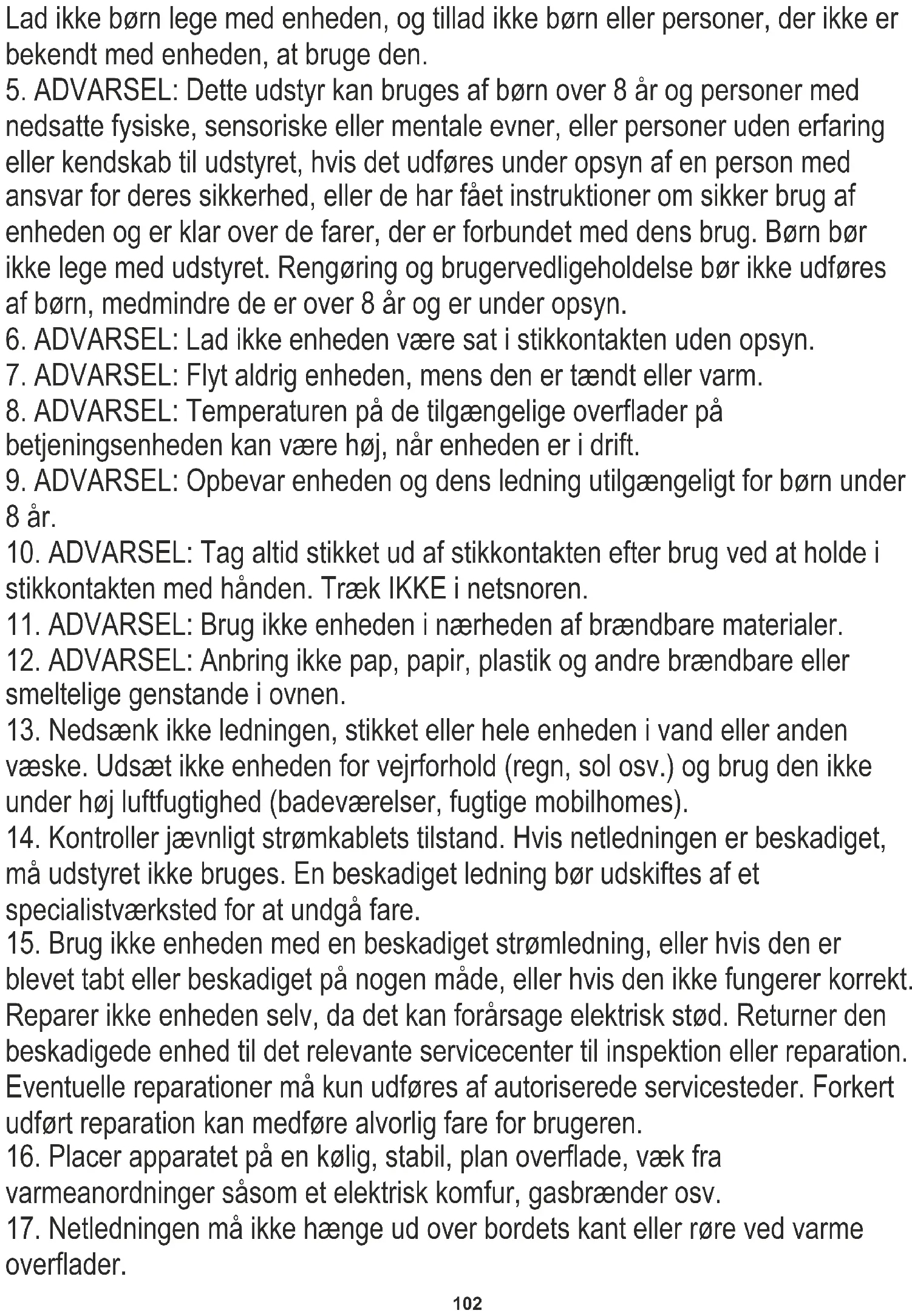 5. ADVARSEL: Dette udstyr kan bruges af børn over 8 år og personer med