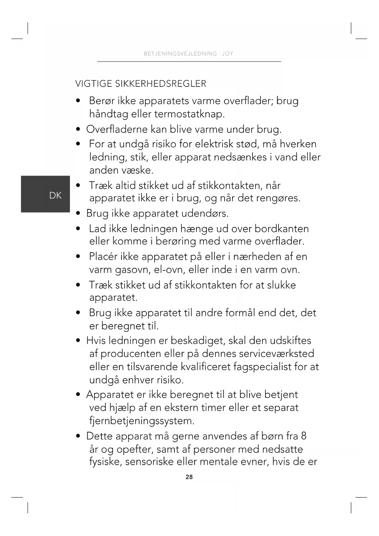 - Dette apparat må gerne anvendes af børn fra 8 år og opefter, samt af personer med nedsatte fysiske, sensoriske eller mentale evner, hvis de er29
