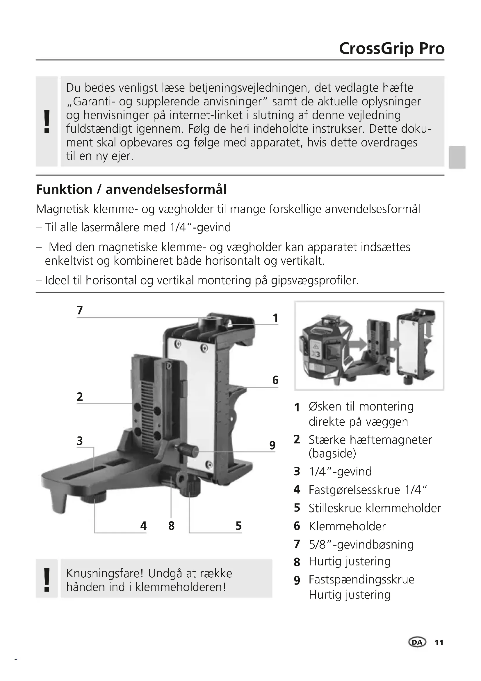 BRUGSANVISNING CrossGrip Pro Laserliner