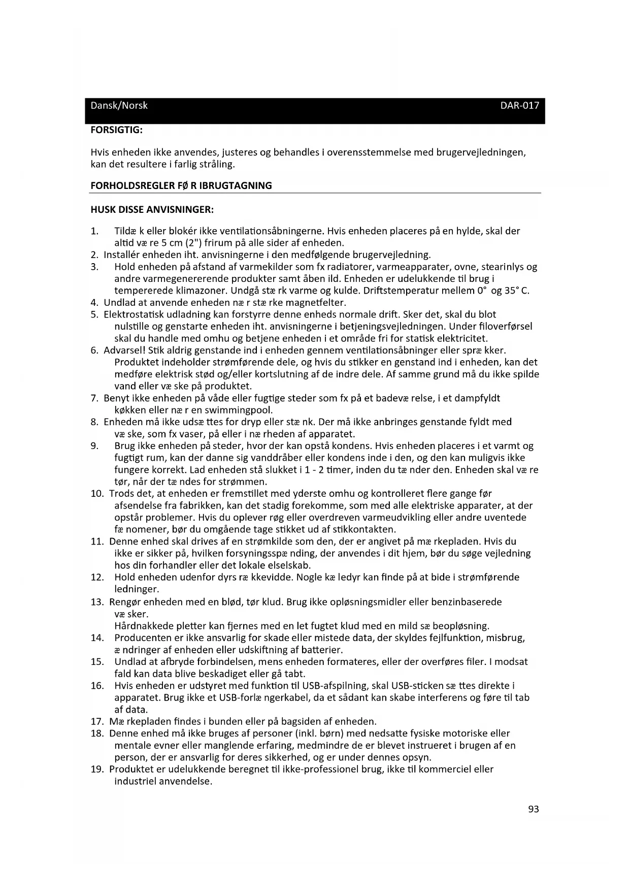 19. Produktet er udelukkende beregnet til ikke-professionel brug, ikke til kommerciel eller