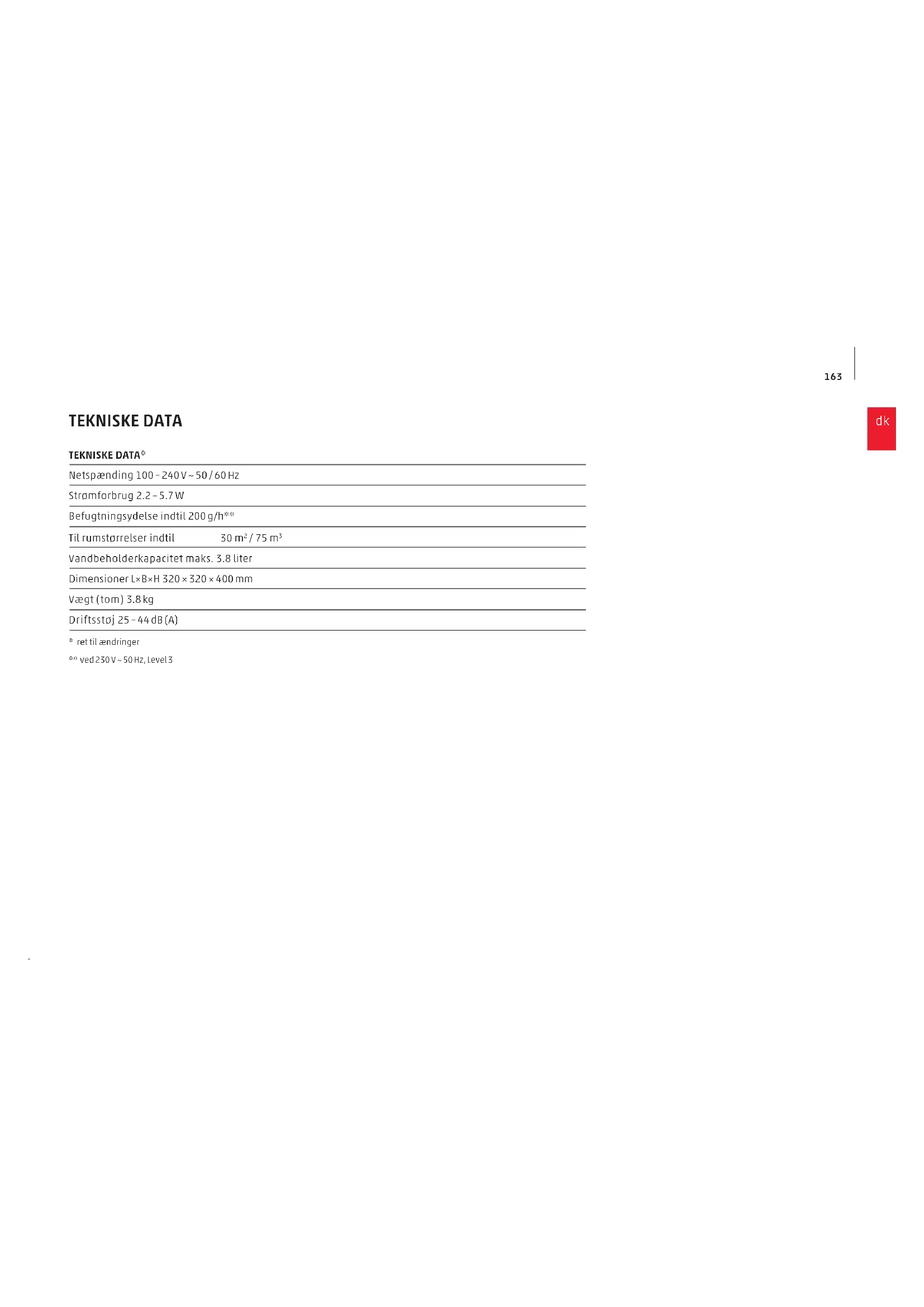- ret til ændringer ** ved 230 V ~ 50 Hz, Level 3 TEKNISKE DATA* Netspænding 100 – 240 V ~ 50 / 60 Hz Strømforbrug 2.2 – 5.7 W Befugtningsydelse indtil 200 g/h** Til rumstørrelser indtil 30 m
