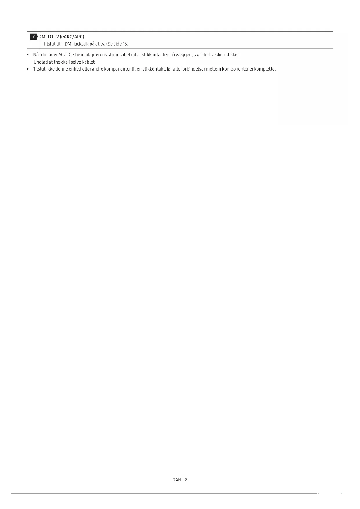 - Stil Subwoofer-højttaleren tættere på dig.DAN - 31 Hvis tv’et ikke er tilsluttet via HDMI TO TV (eARC/ARC)