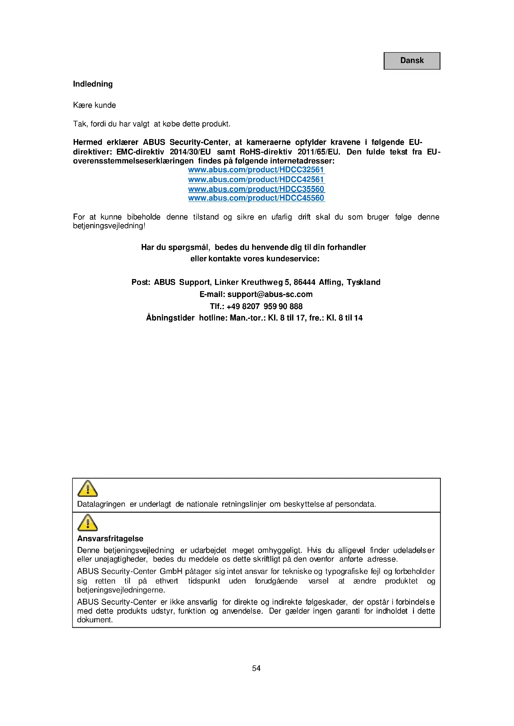 Find enhedens vejledning gratis HDCC35560 ABUS i PDF-format.