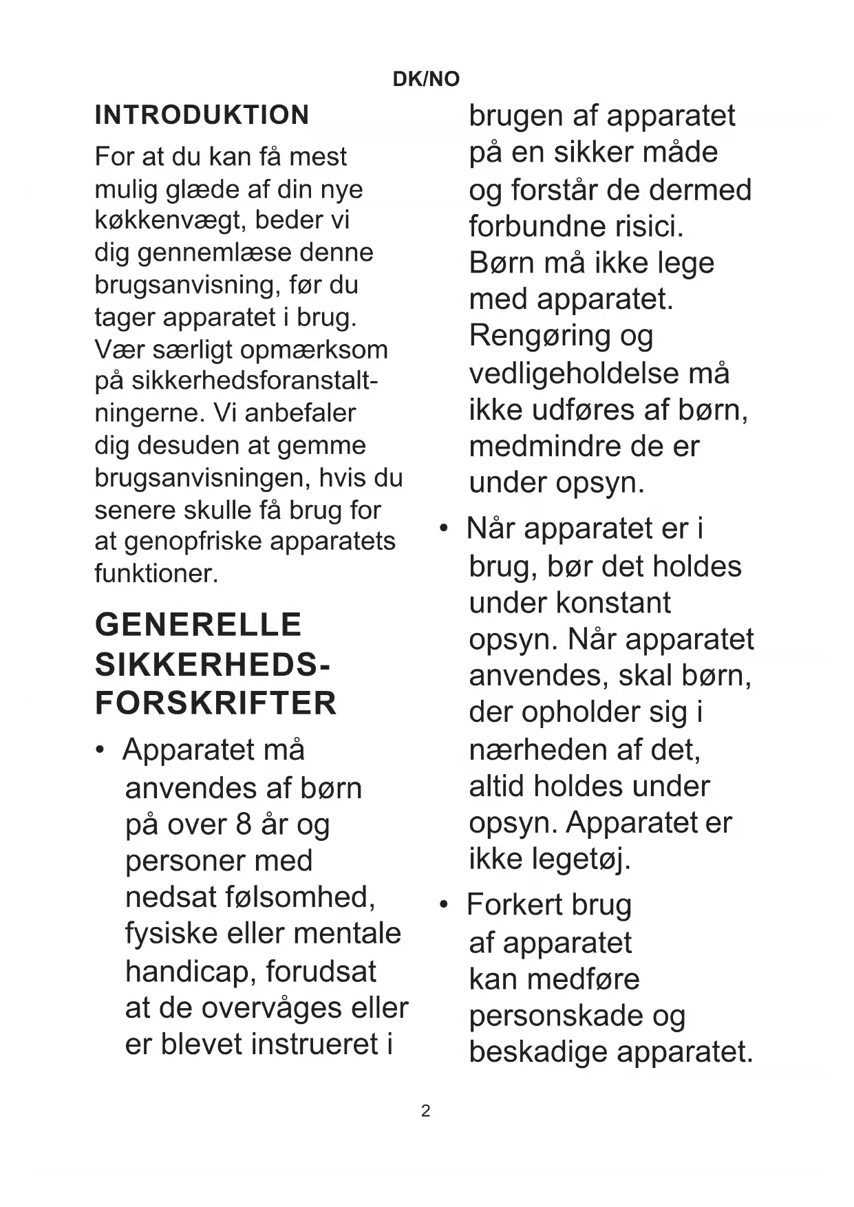 - IT Bilancia elettronica da cucina DK/NO INTRODUKTION For at du kan få mest mulig glæde af din nye køkkenvægt, beder vi dig gennemlæse denne brugsanvisning, før du tager apparatet i brug. Vær særligt opmærksom på sikkerhedsforanstalt- ningerne. Vi anbefaler dig desuden at gemme brugsanvisningen, hvis du senere skulle få brug for at genopfriske apparatets funktioner. GENERELLE SIKKERHEDS - FORSKRIFTER p. 772