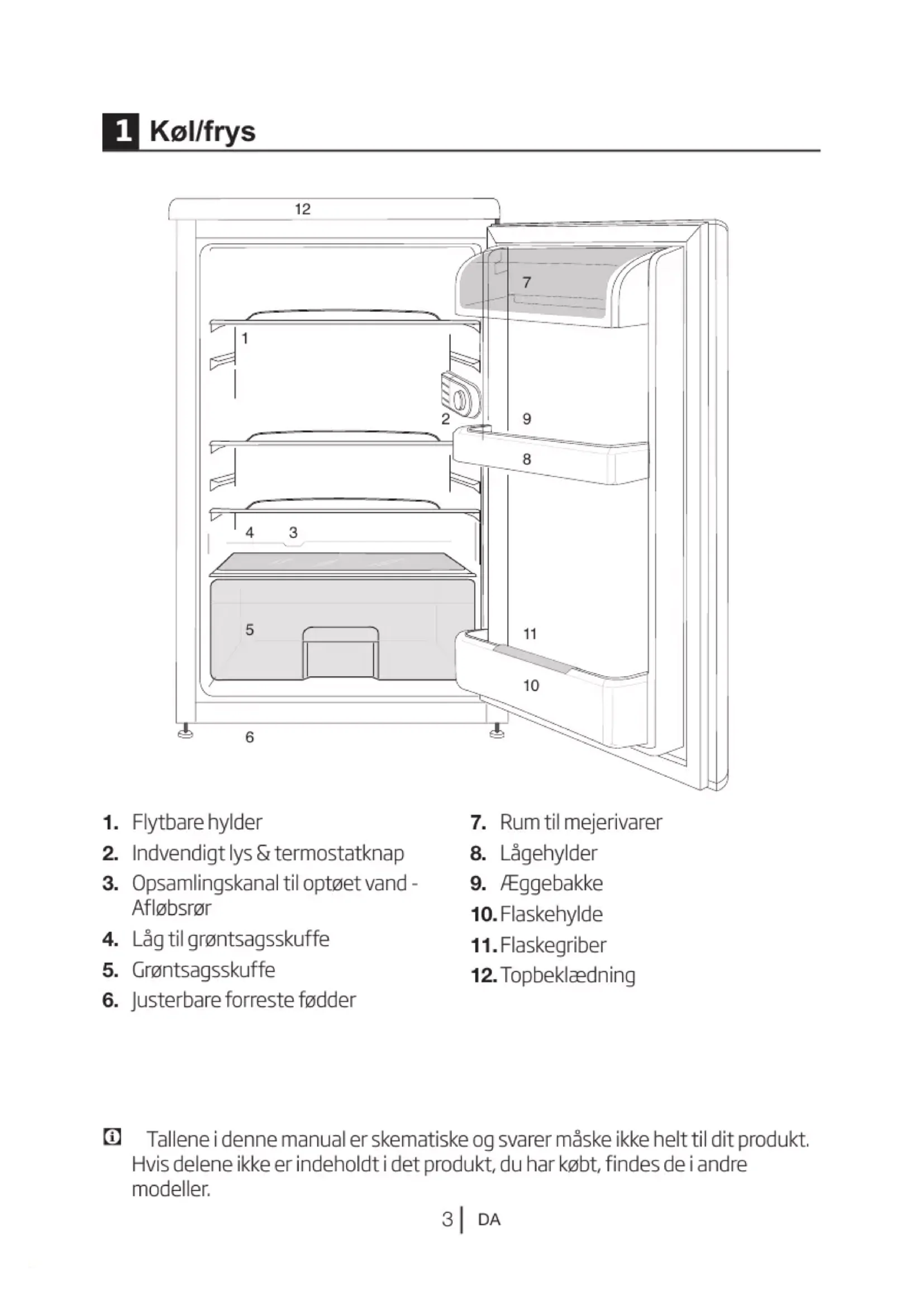 - Til et fritstående køleskab: "dette køleskab er ikke beregnet til at blive brugt som indbygget køleskab".
