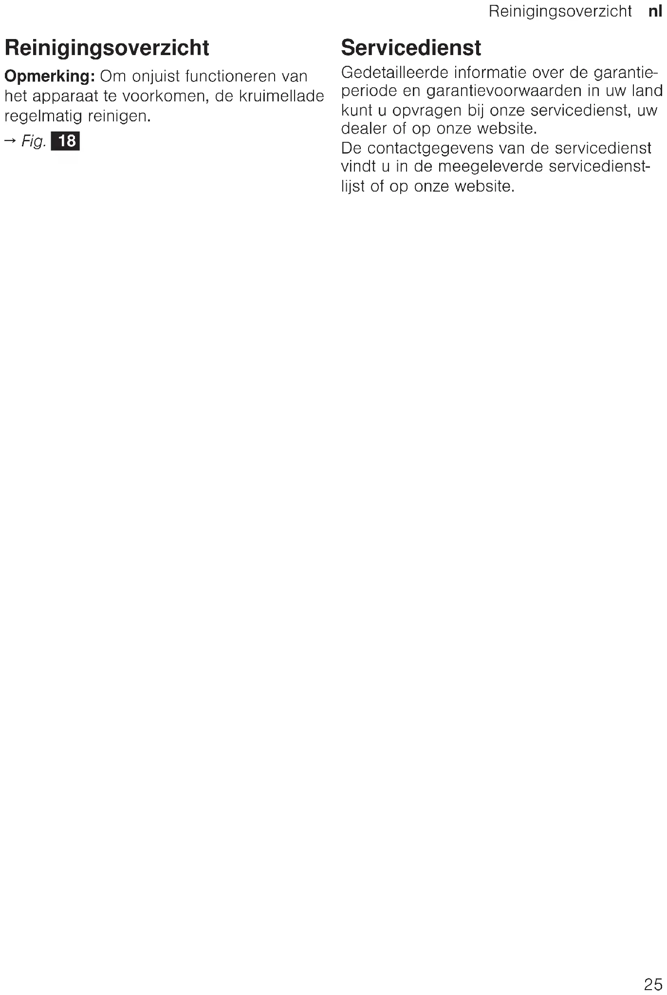 - Fig. 11 - 17 Rengøringsoversigt Bemærk:Rengør krummebakken regel- mæssigt for at undgå funktionsfejl på appa- ratet.