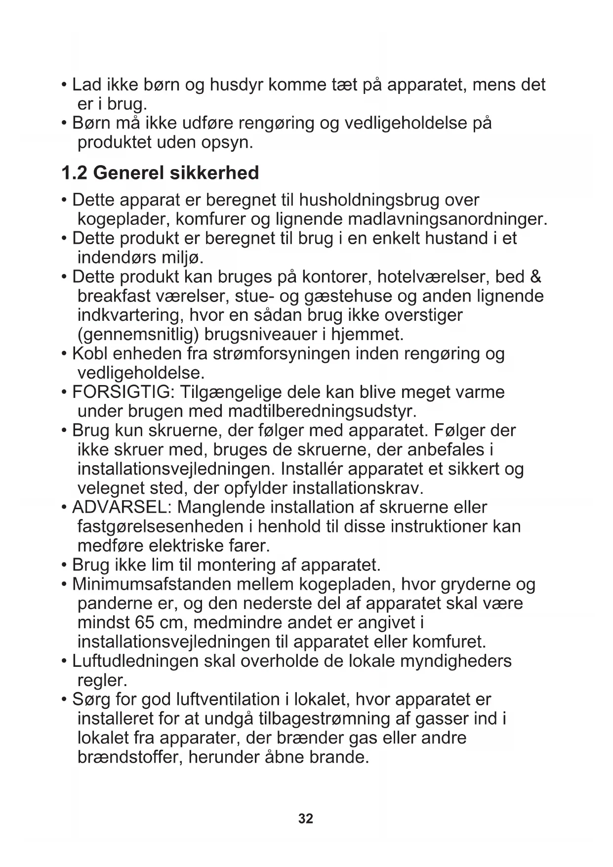 - Dette apparat er beregnet til husholdningsbrug over kogeplader, komfurer og lignende madlavningsanordninger.