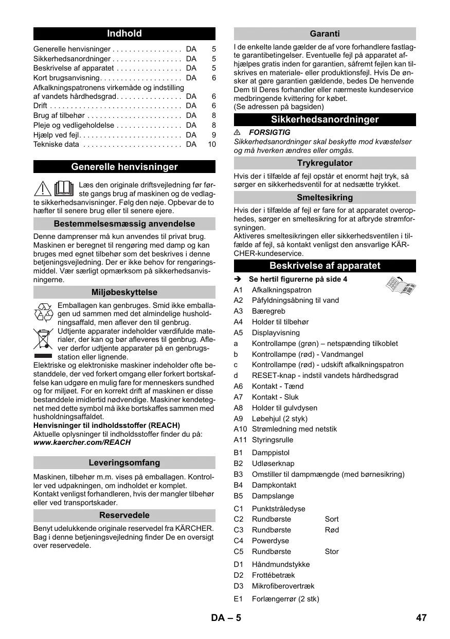 Denne damprenser mä kun anvendes til privat brug. Maskinen er beregnet til rengöring med damp og kan bruges med egnet tilbehör som det beskrives i dette betjeningsvejledning. Der er/DDke behov for rengöringsmiddel. Vær saerlig opmaerksom på sikkerhedsanvisningerne.