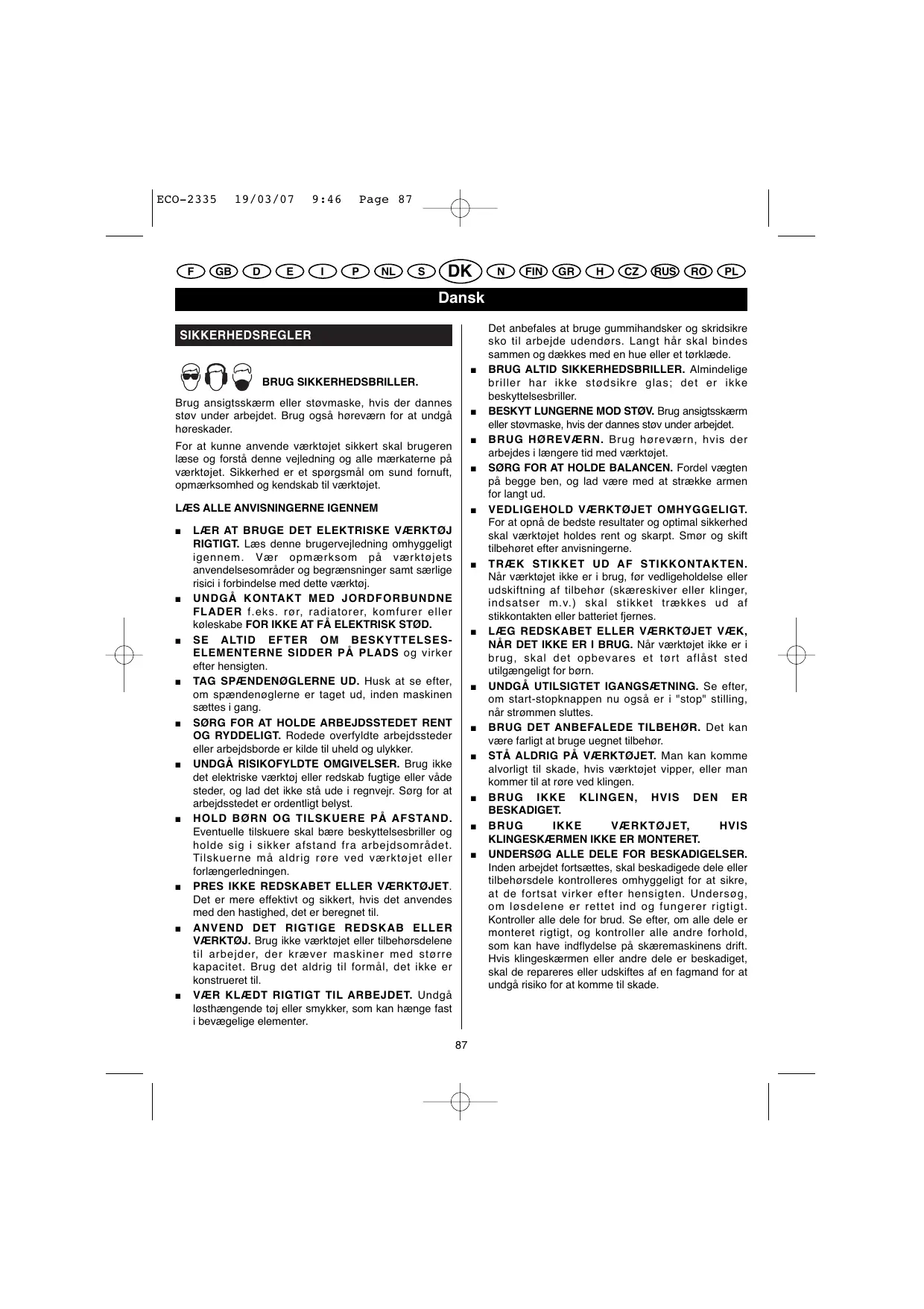 BRUGSANVISNING ECO-2335 RYOBI