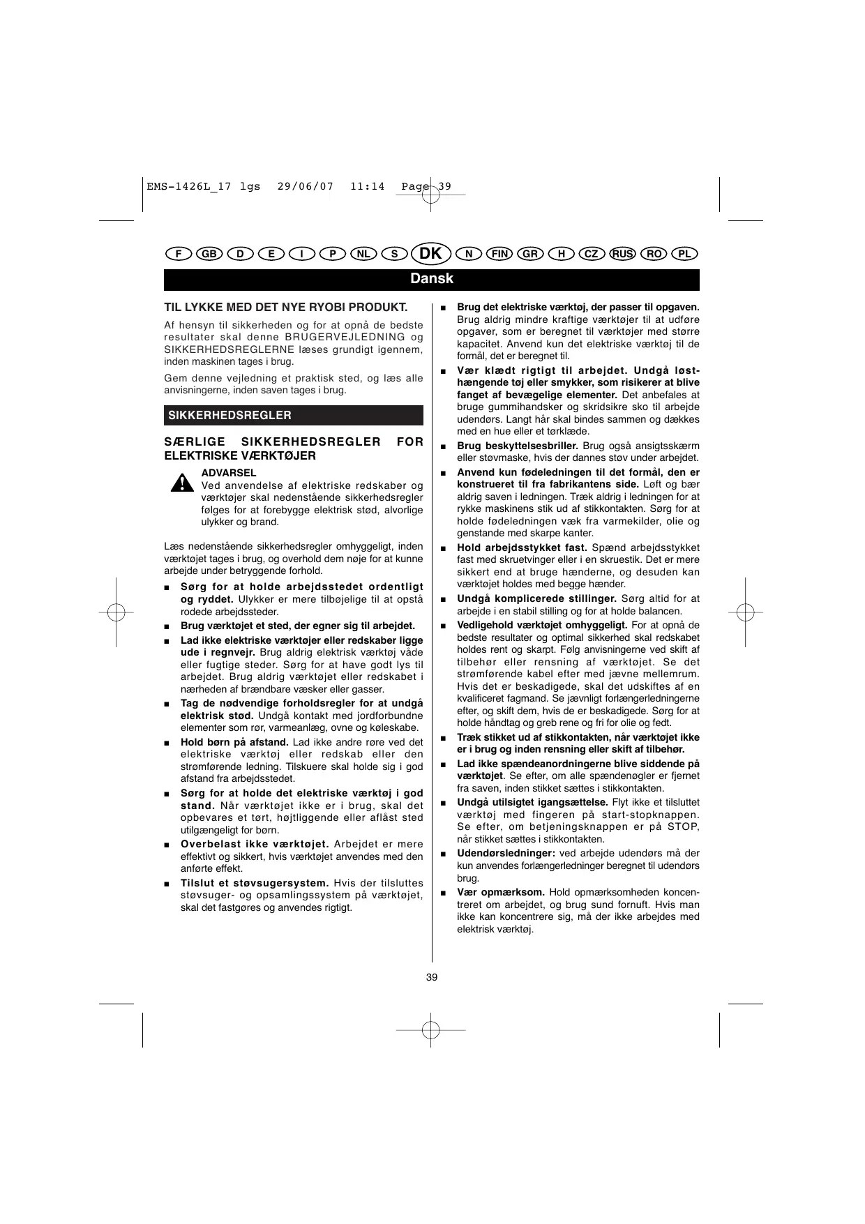BRUGSANVISNING EMS-1426L RYOBI