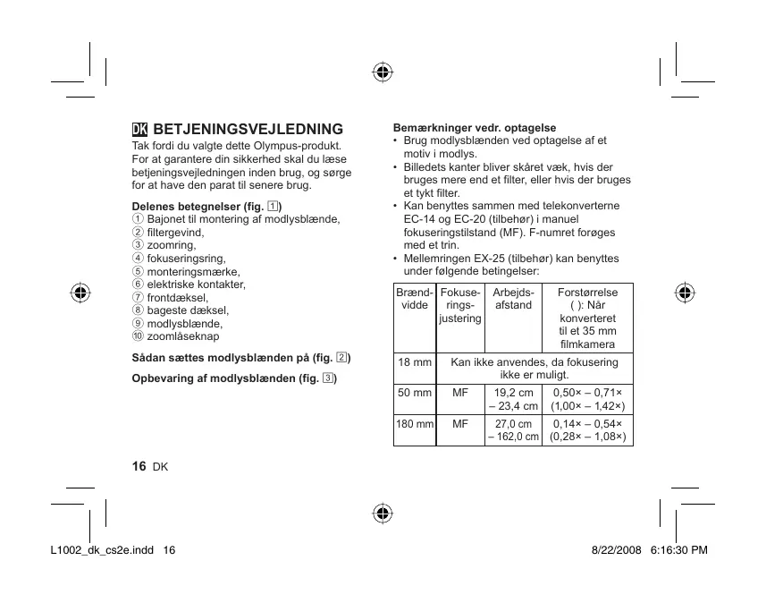 BRUGSANVISNING ZUIKO DIGITAL ED 18-180MM F3.5-6.3 OLYMPUS